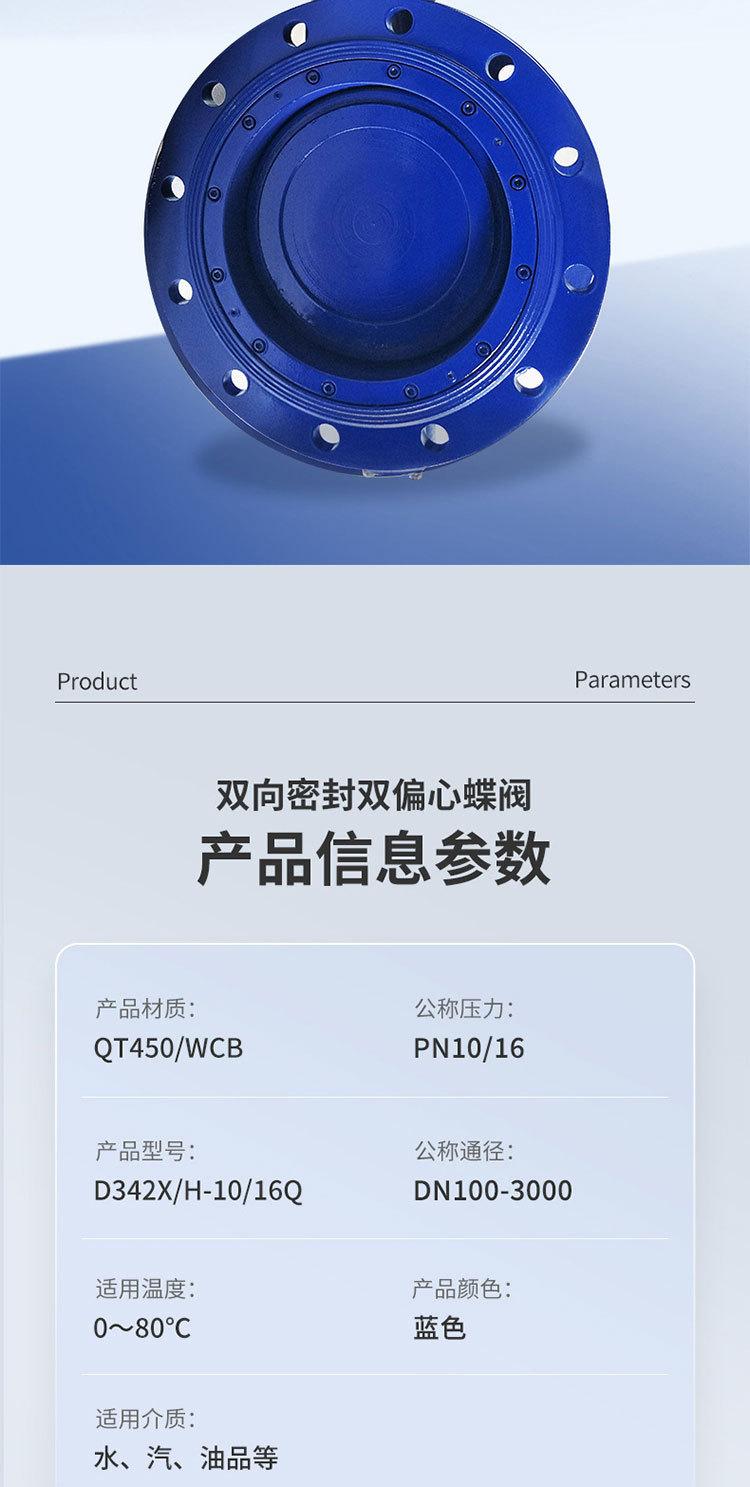 Válvula borboleta de flange de grande diâmetro D342X/H-16Q Válvula borboleta excêntrica dupla de ferro fundido com tinta de esfera Manual de vedação suave bidirecional