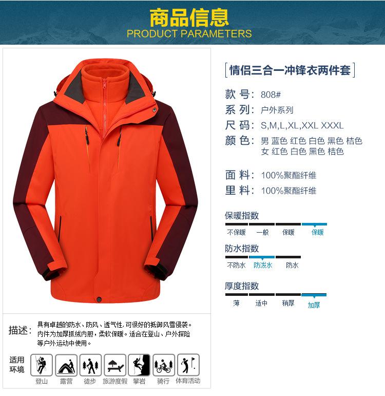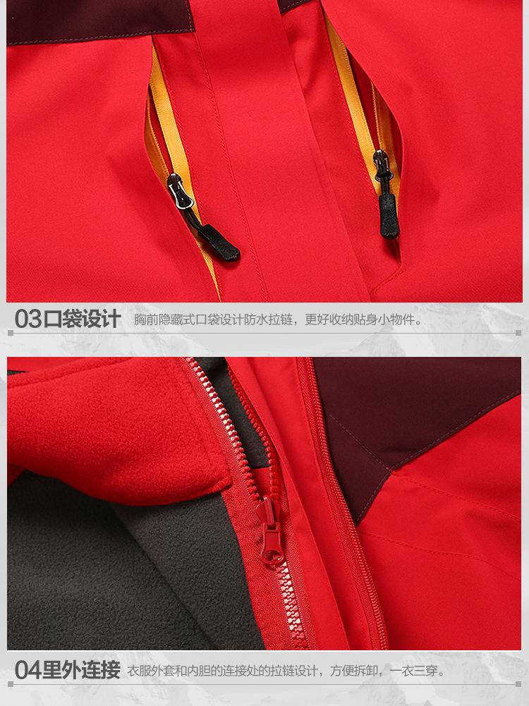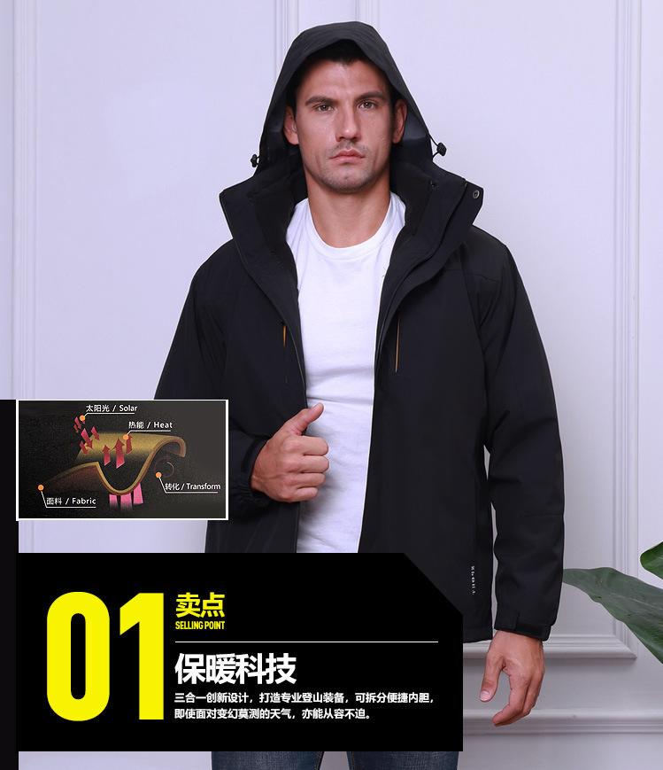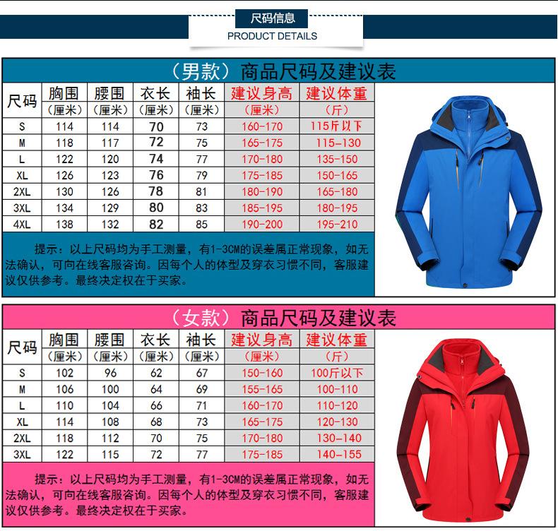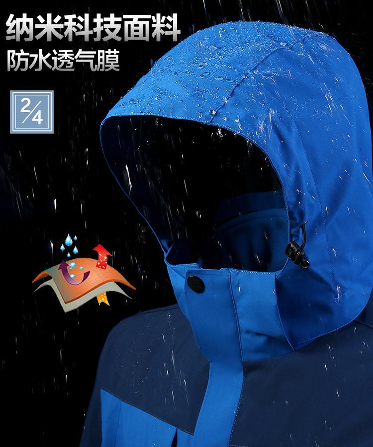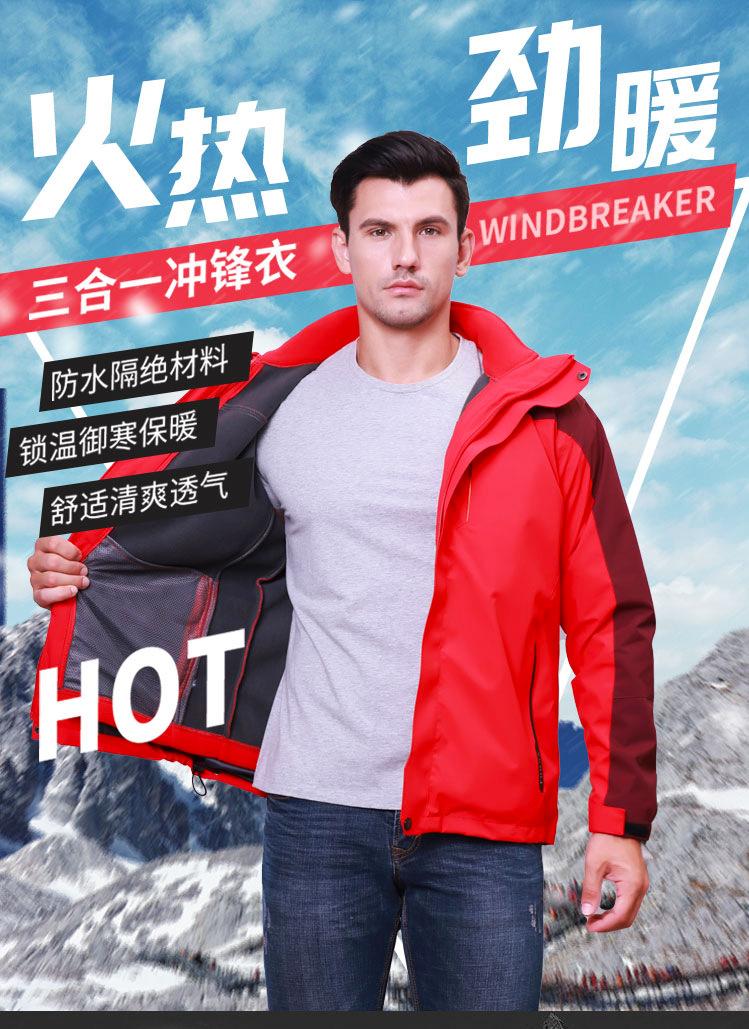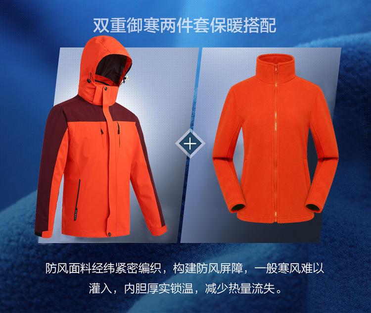 Jaqueta Outdoor para Homens e Mulheres Conjunto Três-Em-Um 0.05kg Removível Fleece Corta-vento e Impermeável Jaqueta de Montanhismo para Caminhadas