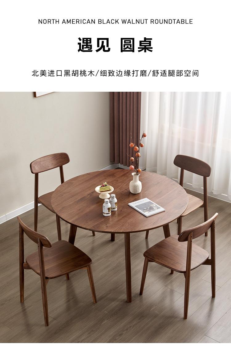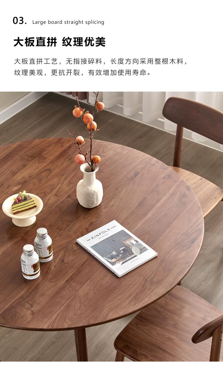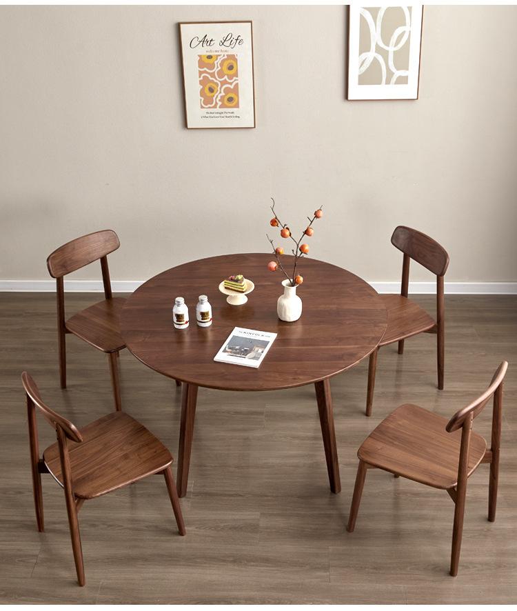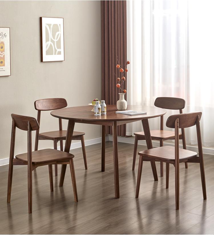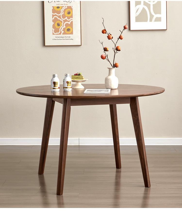 Mesa de jantar em nogueira preta norte-americana moderna e simples, casa de madeira de tronco, apartamento pequeno, mesa redonda nórdica de madeira maciça, combinação de mesa de jantar e cadeira