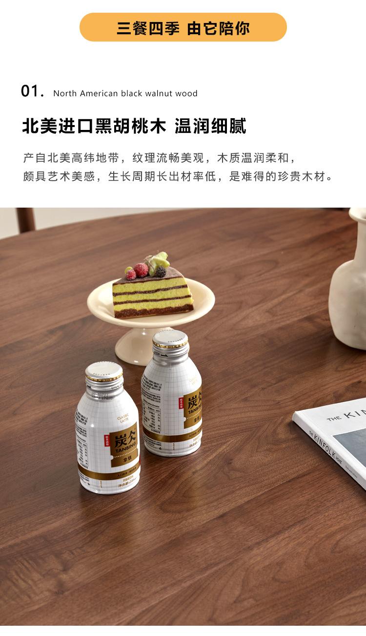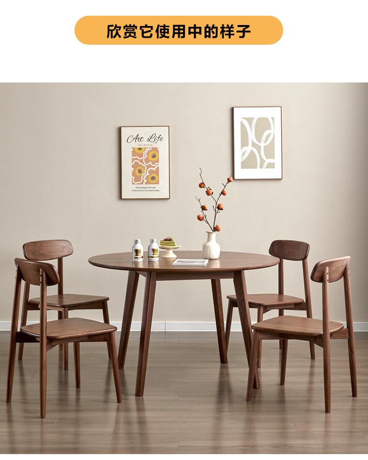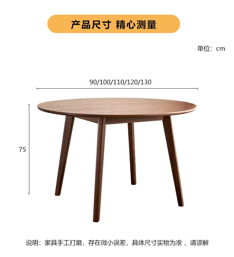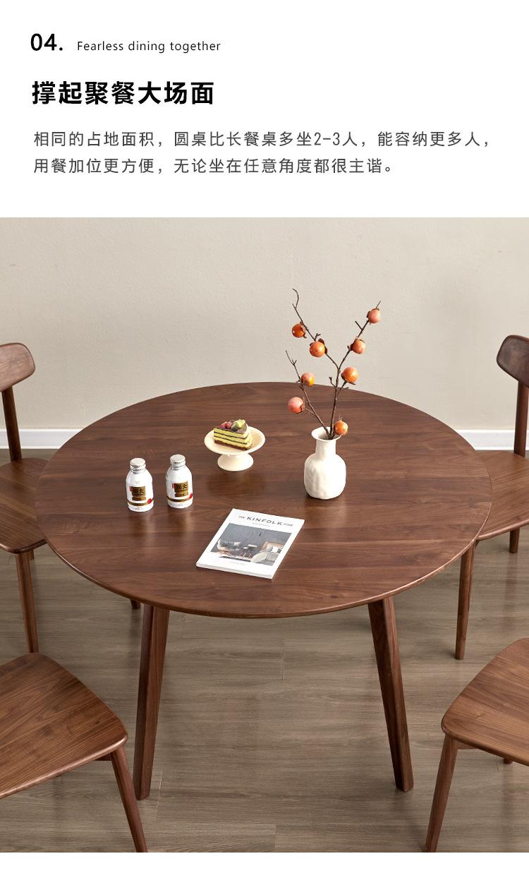 Mesa de jantar em nogueira preta norte-americana moderna e simples, casa de madeira de tronco, apartamento pequeno, mesa redonda nórdica de madeira maciça, combinação de mesa de jantar e cadeira