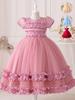 Comércio exterior novo estilo pequeno host malha vestido infantil manga comprida feito à mão frisado vestido de noiva princesa vestido menina