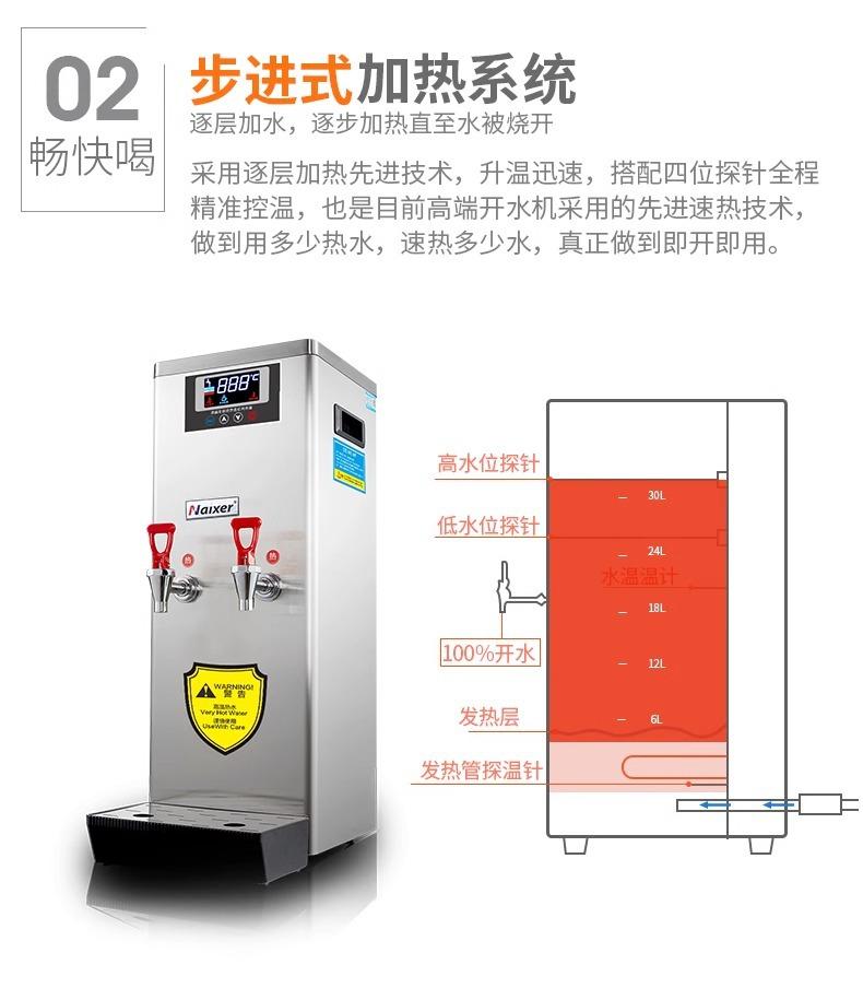 Caldeira de água comercial Nai Xue 50L totalmente automática passo a passo, caldeira de água de aço inoxidável com aquecimento duplo, dispensador de água, leite, chá, água quente