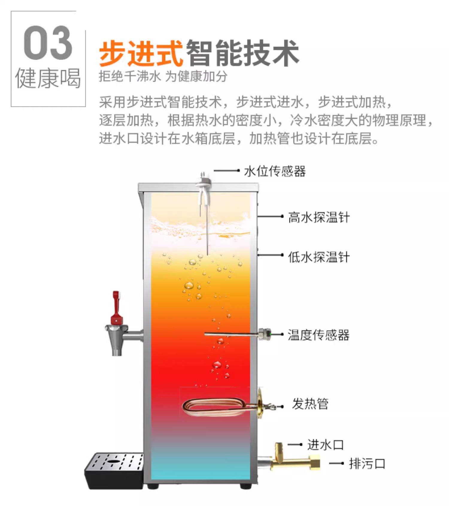 Commercial fully automatic step-by-step dual-heat stainless steel water boiler water dispenser
