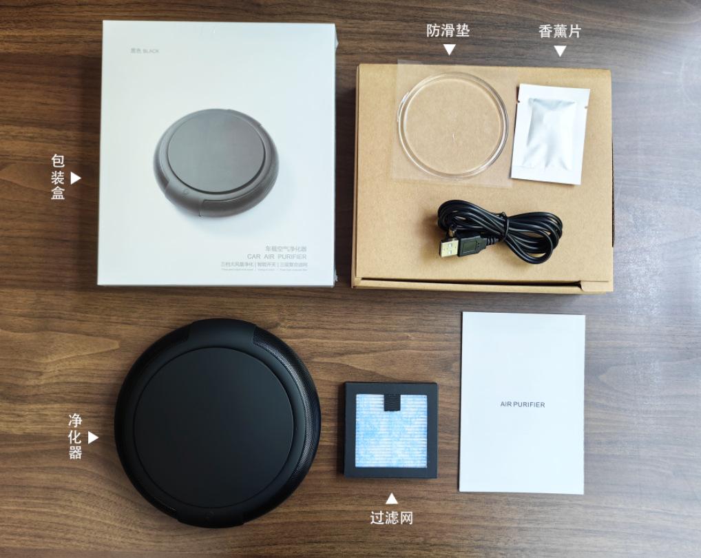 Nome do produto: Caixa de purificação inteligente Material: ABS + componentes eletrônicos Modo de fonte de alimentação: USB/isqueiro de carro Tensão de operação: 5V Potência nominal: 3W Espaço aplicável: 3-10㎡ Frequência: 50HZ Corrente: 0,025A Índice silencioso: <30 db Ar volume: 5,5CFM Método de purificação: HEPA · Esponja de carvão ativado · Íons negativos Tamanho do produto: 155*42mm Tamanho da embalagem: 24*18*5cm Tamanho da caixa: 57*48,5*26,5cm Peso líquido do produto: 0,55kg Quantidade/peso da embalagem: 27PCS /17KG Quantidade: 1000PC 85 yuan