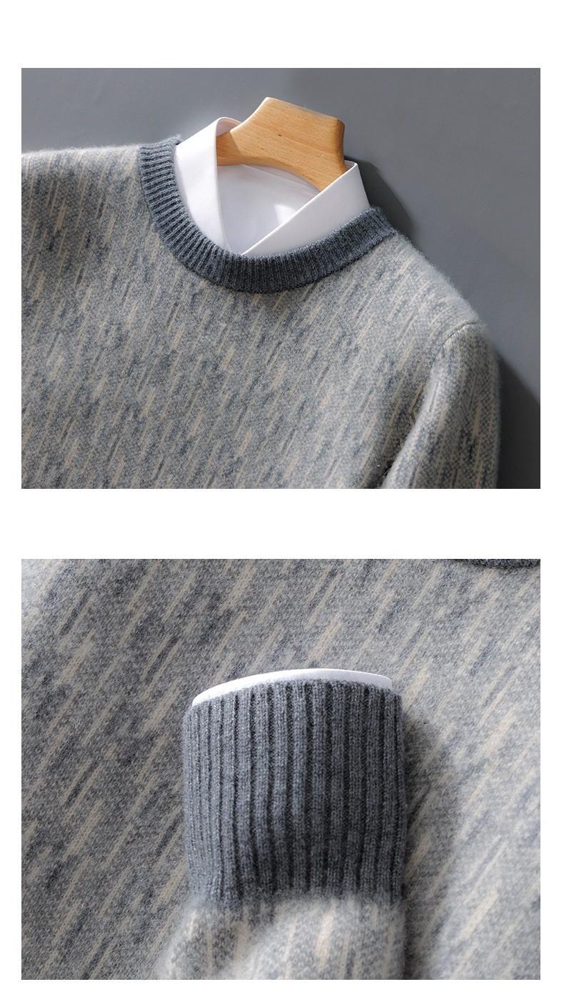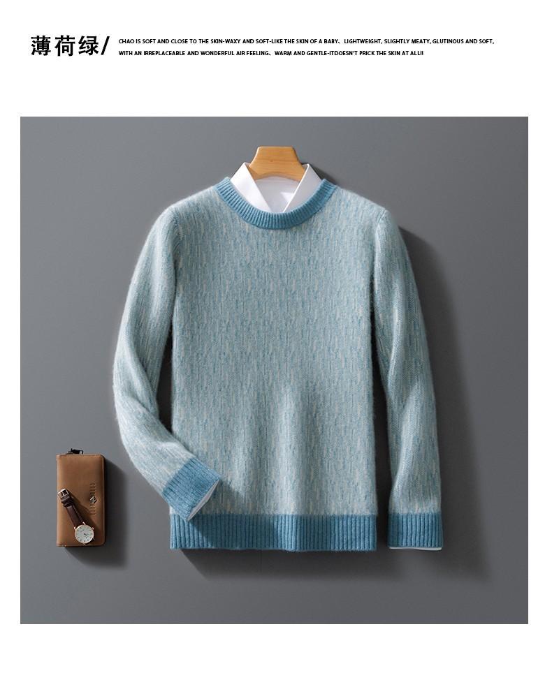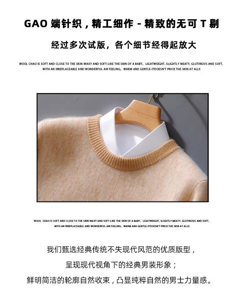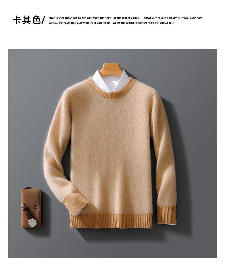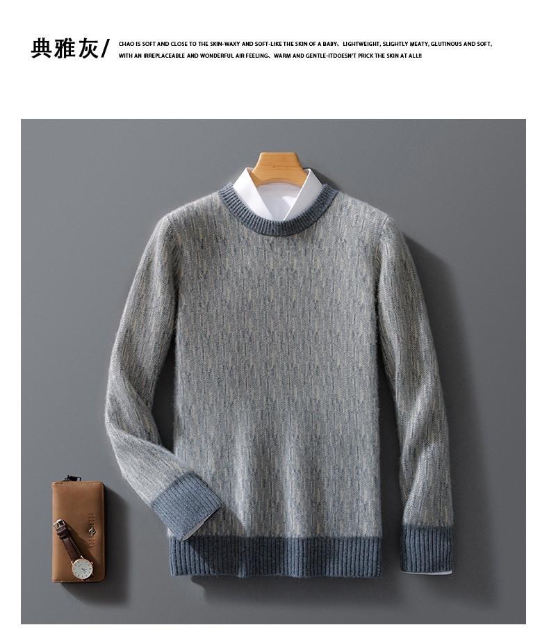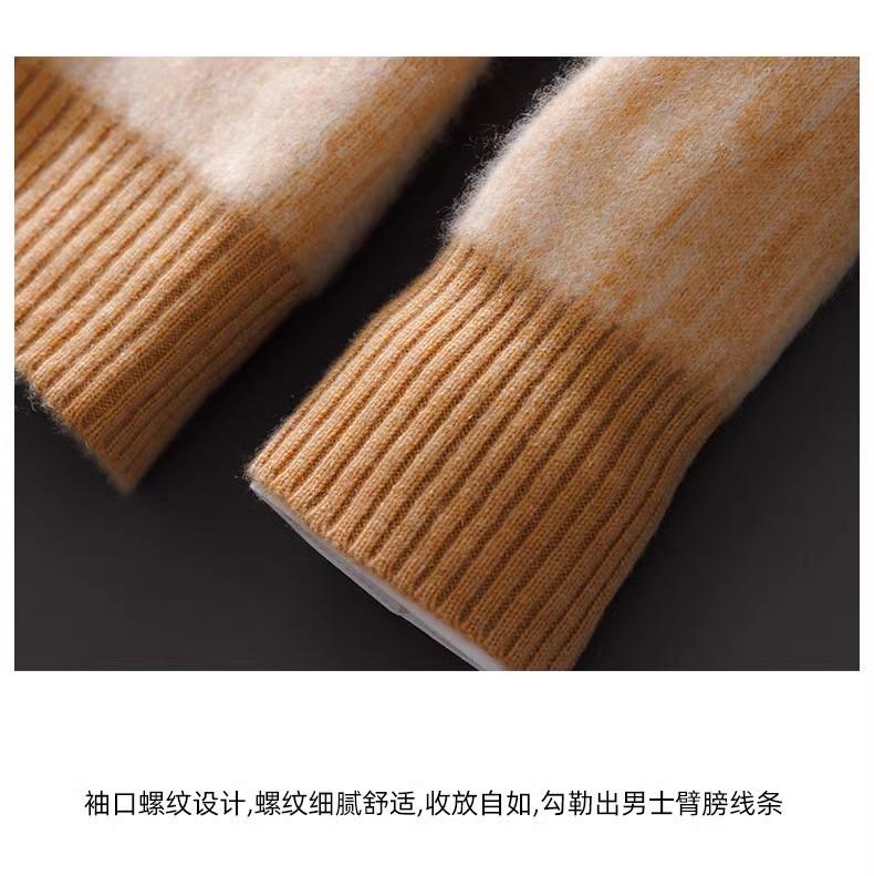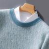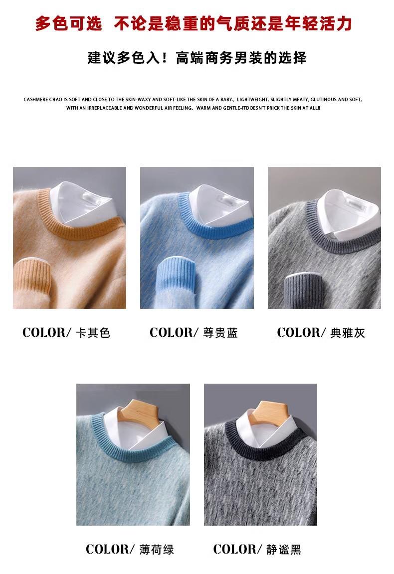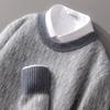 2024 outono e inverno 100 suéter de lã pura dos homens novo gola redonda correspondência de cor de malha de cashmere quente grosso pulôver suéter