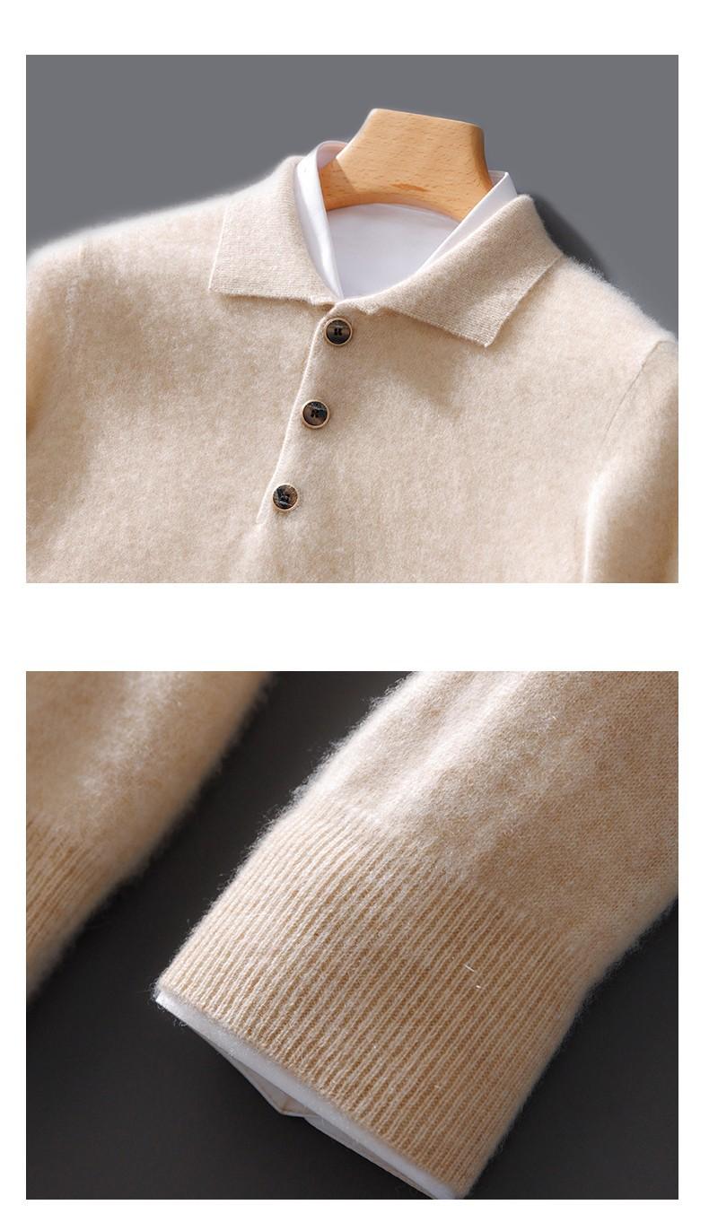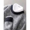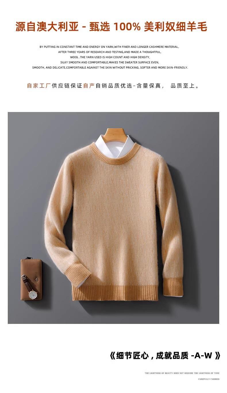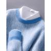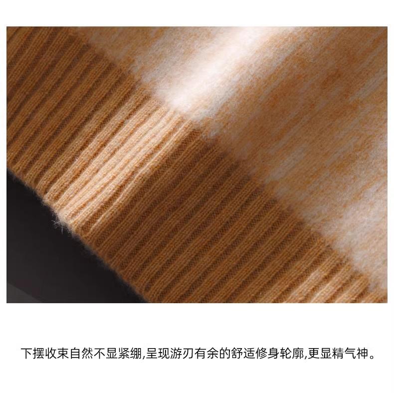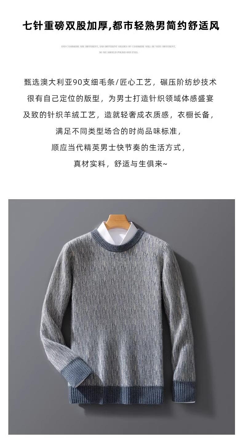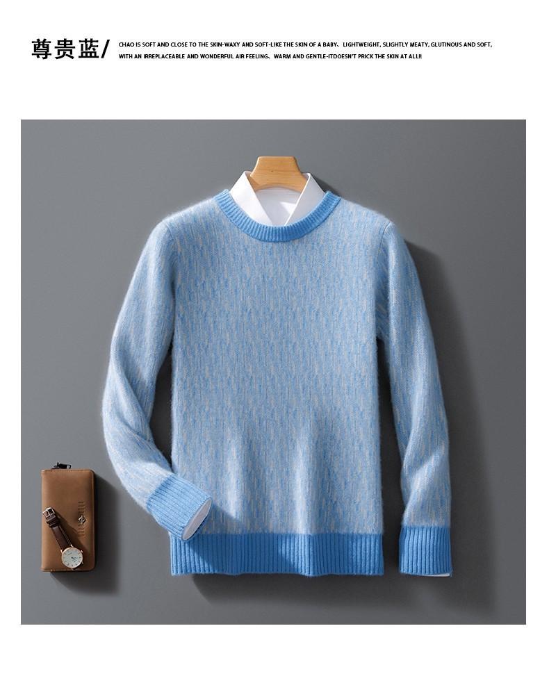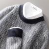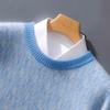 2024 outono e inverno 100 suéter de lã pura dos homens novo gola redonda correspondência de cor de malha de cashmere quente grosso pulôver suéter