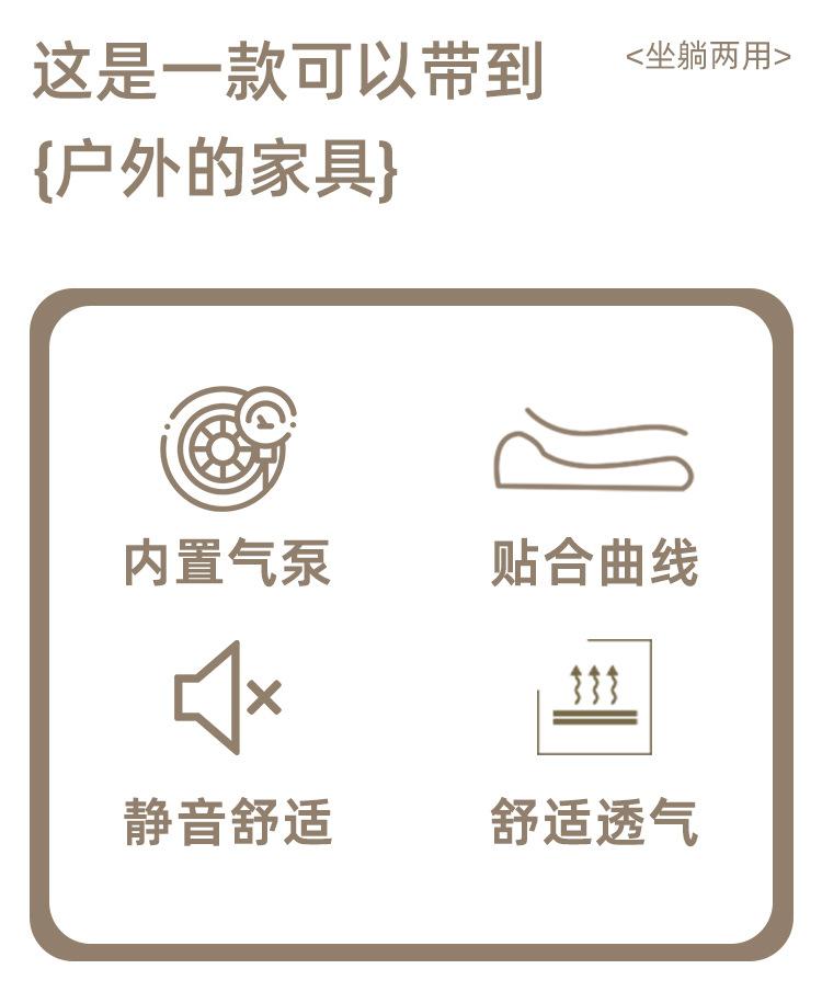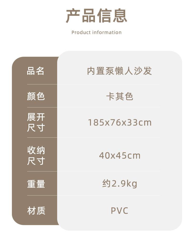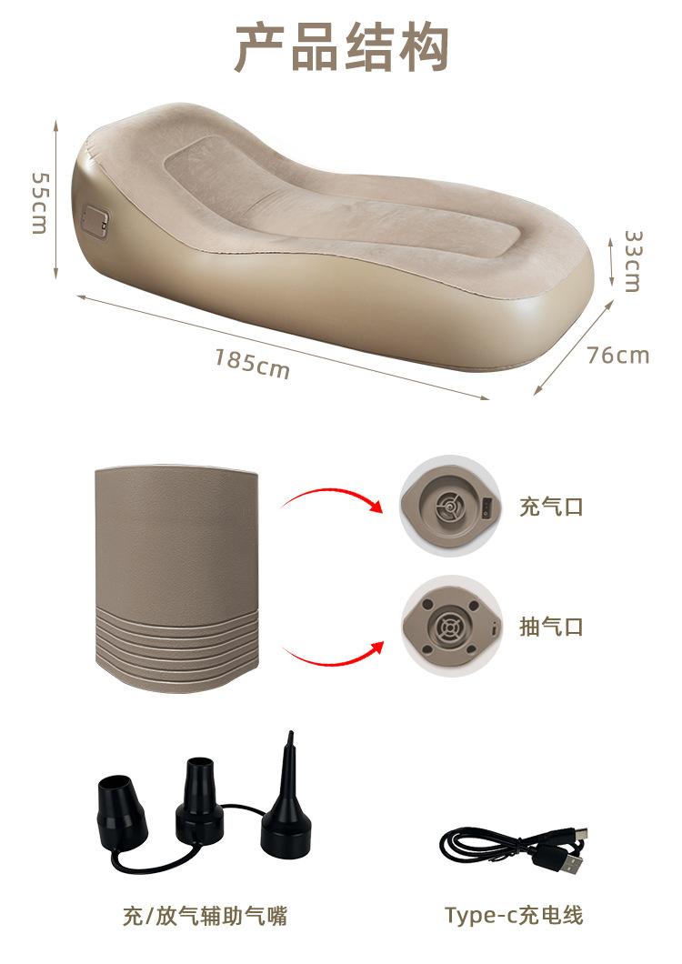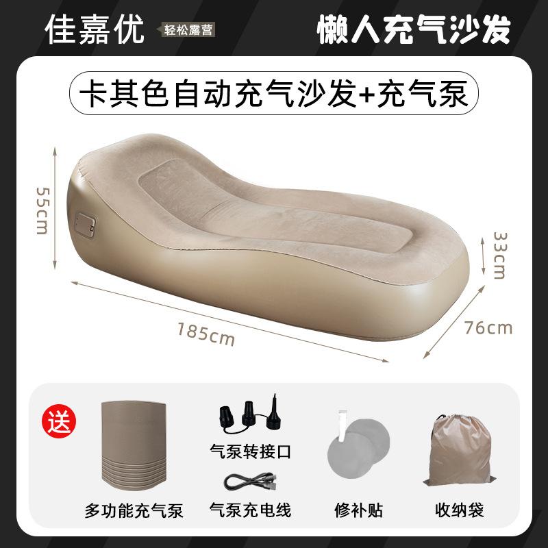 Khaki automatic inflatable sofa, S-shaped khaki automatic sofa (5th generation pump with light)