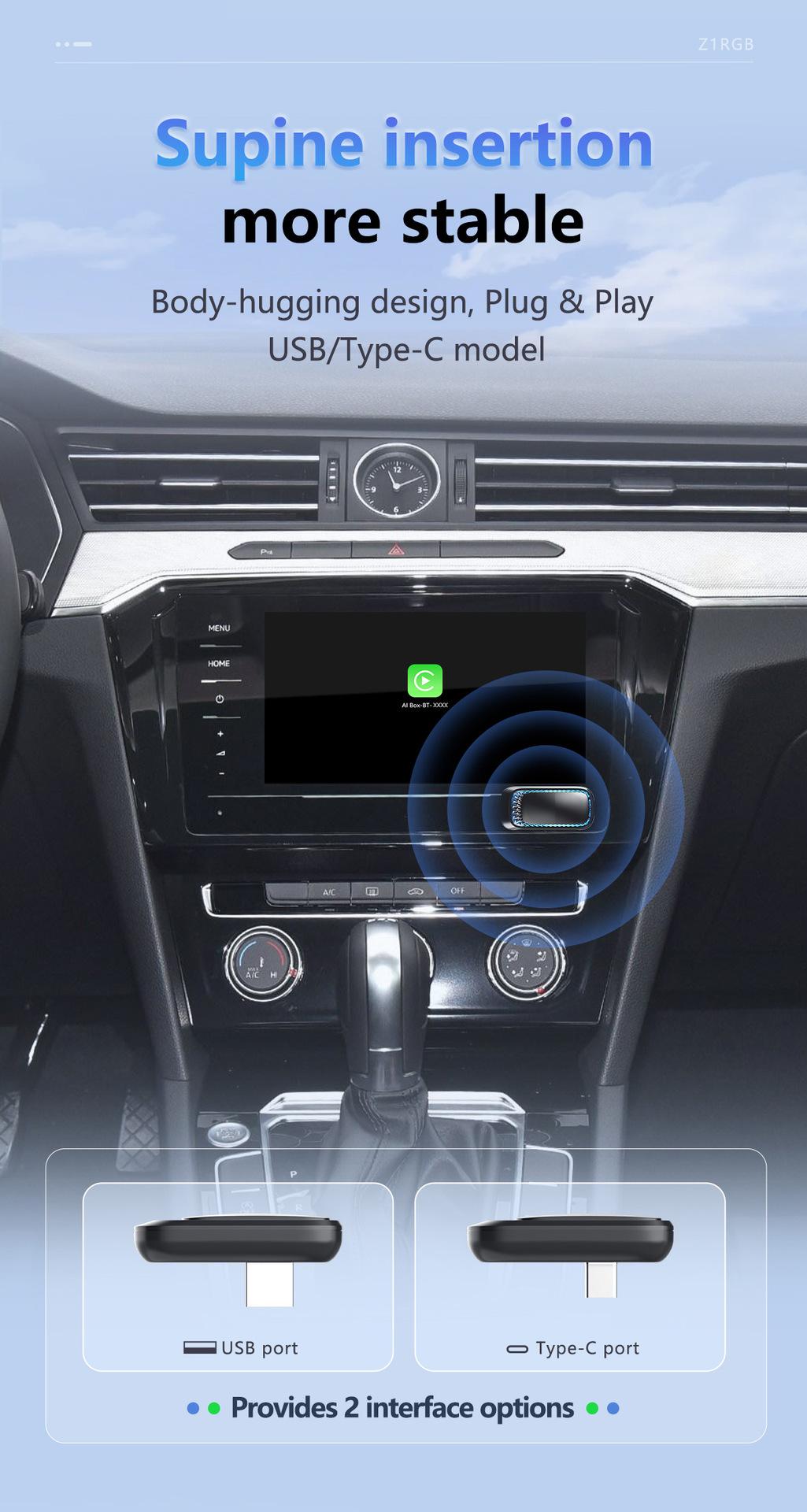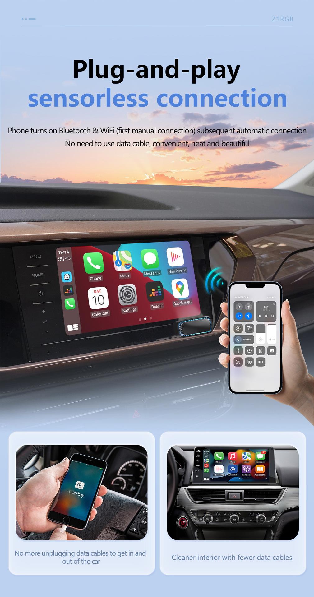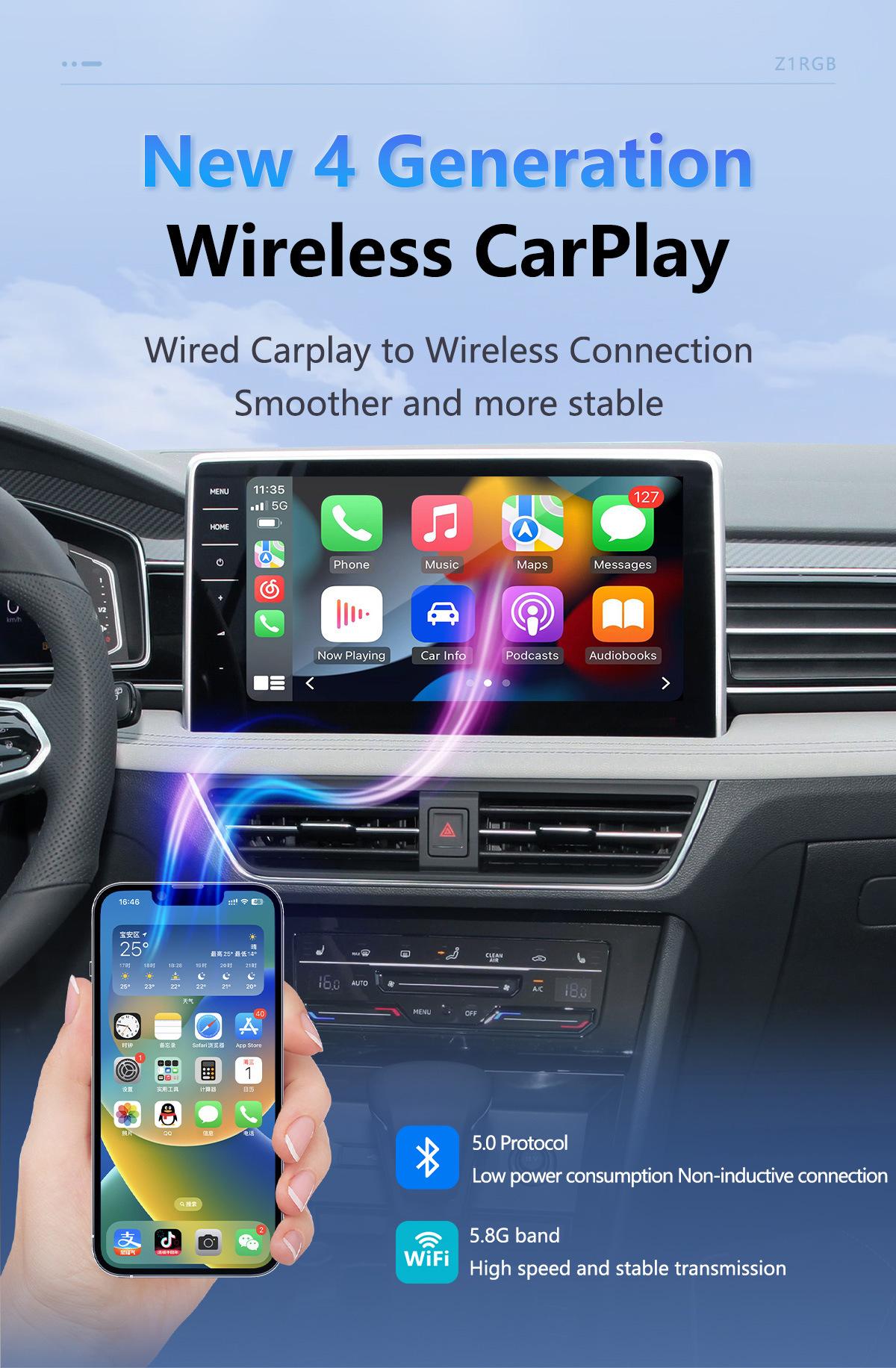 Caixa Carplay Transfronteiriça Converte Carplay com Fio em Sem Fio Apple Carplay e Android Auto Caixa de Conectividade Automotiva Dois-em-Um
