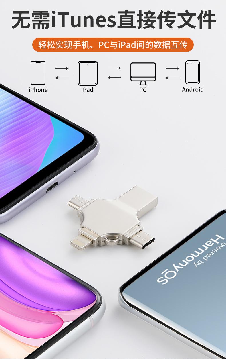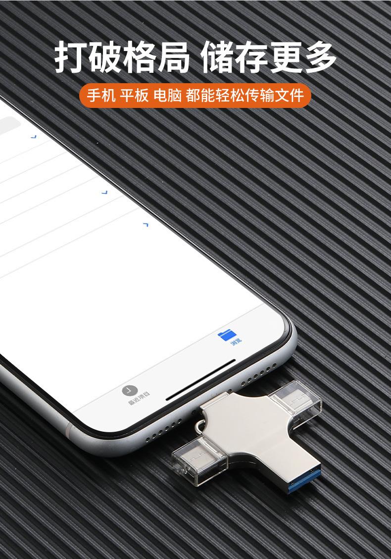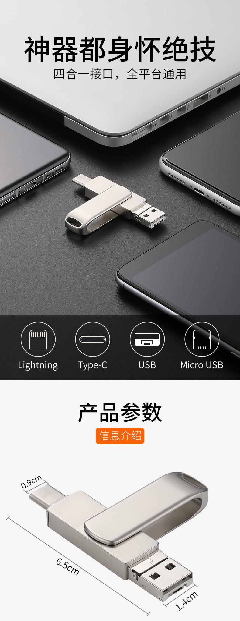 Pen Drive USB 4 em 1 Giratório de Metal para Celular de Grande Capacidade 1Tb2Tb Atacado Otg Transfronteiriço Pen Drive USB Atacado Logotipo Gravado
