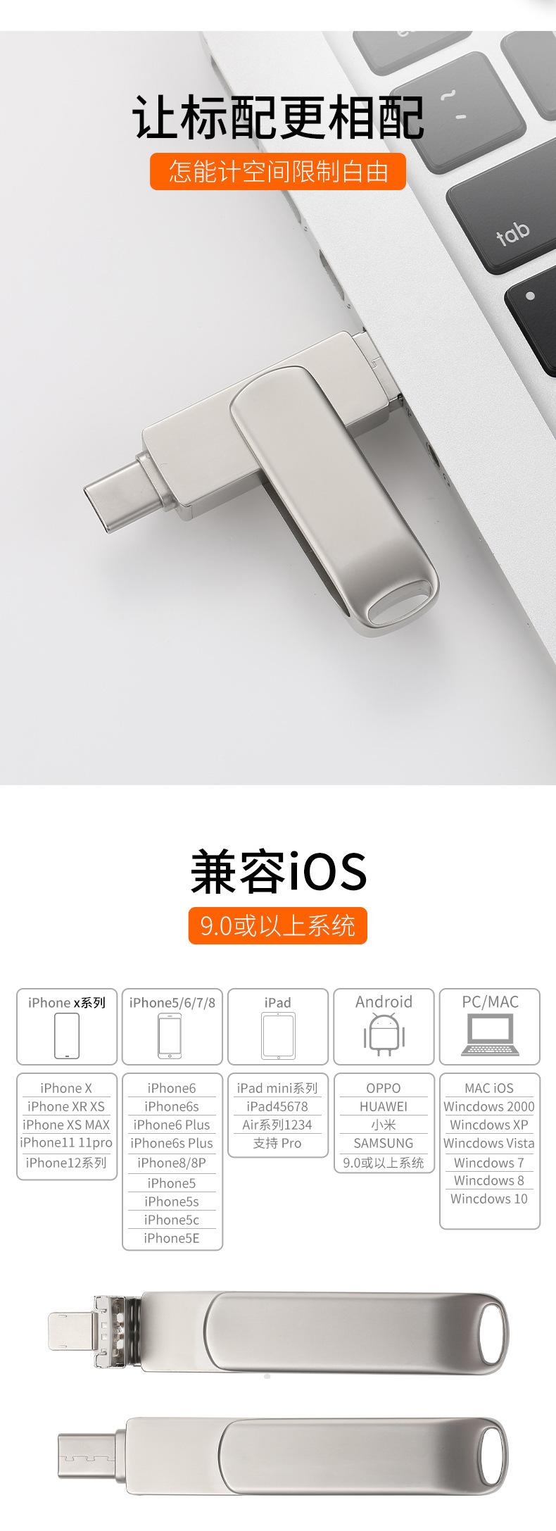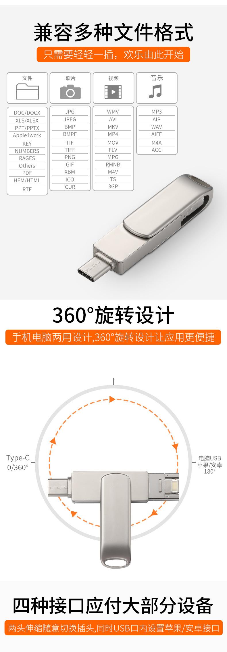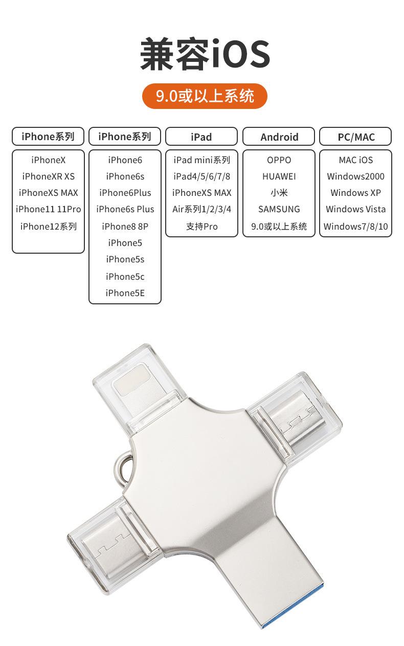 Pen Drive USB 4 em 1 Giratório de Metal para Celular de Grande Capacidade 1Tb2Tb Atacado Otg Transfronteiriço Pen Drive USB Atacado Logotipo Gravado