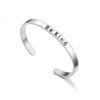 Fabricantes de pulseira de aço de titânio atacado aberto ajustável em forma de c pulseira feminina gravada padrão texto logotipo pulseira de aço inoxidável