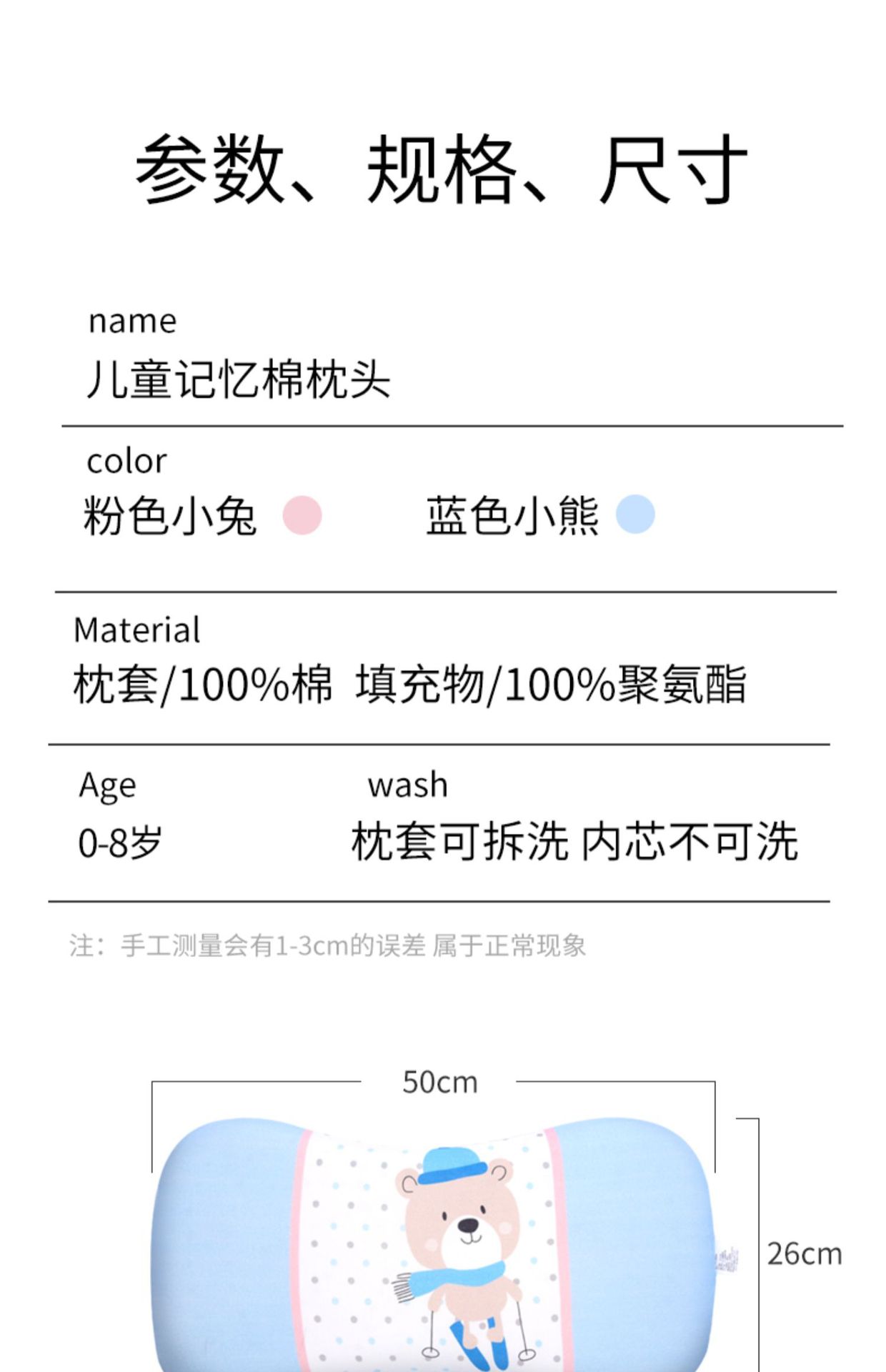 50*26 (pillow 1.5cm), 50*26 (pillow core about 3cm), Single pillowcase