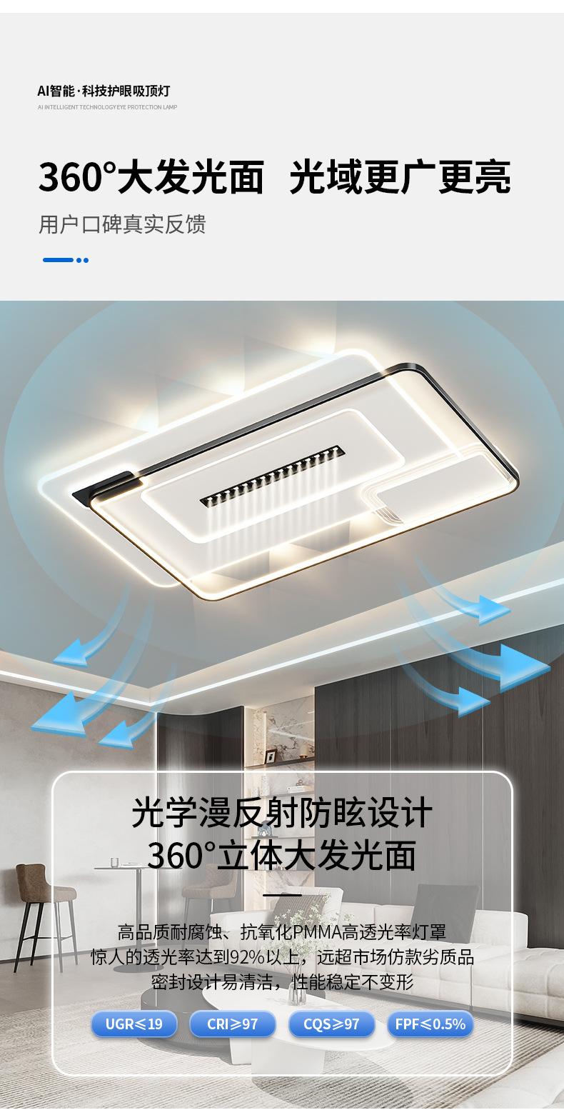 Lâmpada de teto inteligente para toda a casa Nova lâmpada de sala de estar de espectro completo Lâmpada principal de salão moderna simples para proteção ocular Lâmpada de teto de quarto