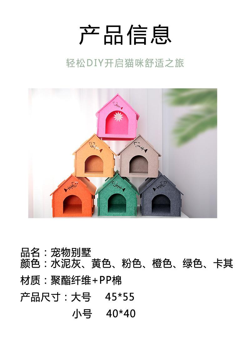 Ninho de feltro para animais de estimação Ninho de gato de feltro Villa para animais de estimação Casa de cachorro de feltro DIY Splice Ninho de gato removível