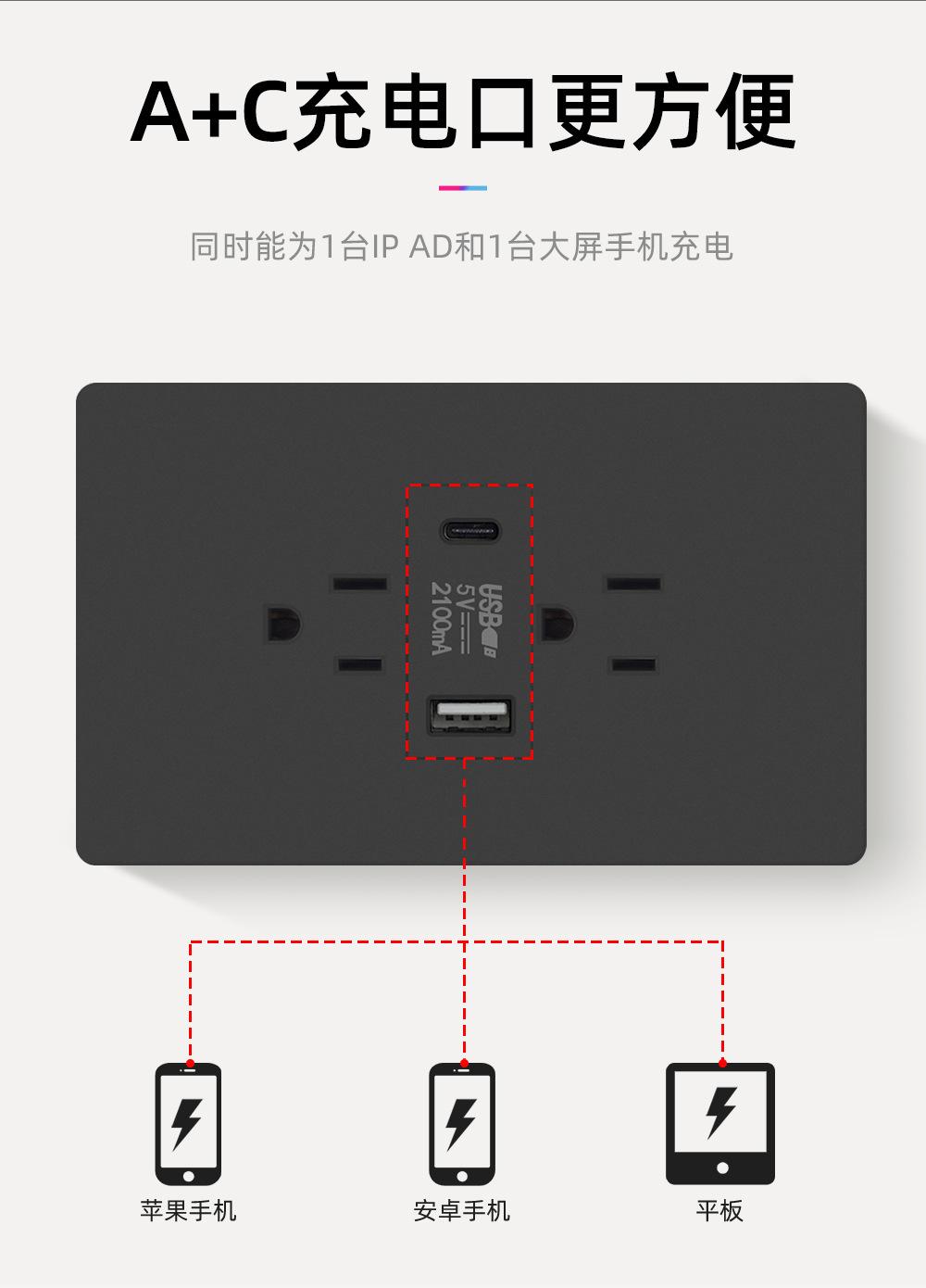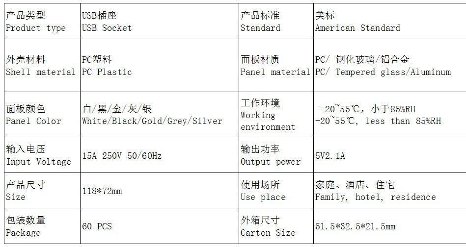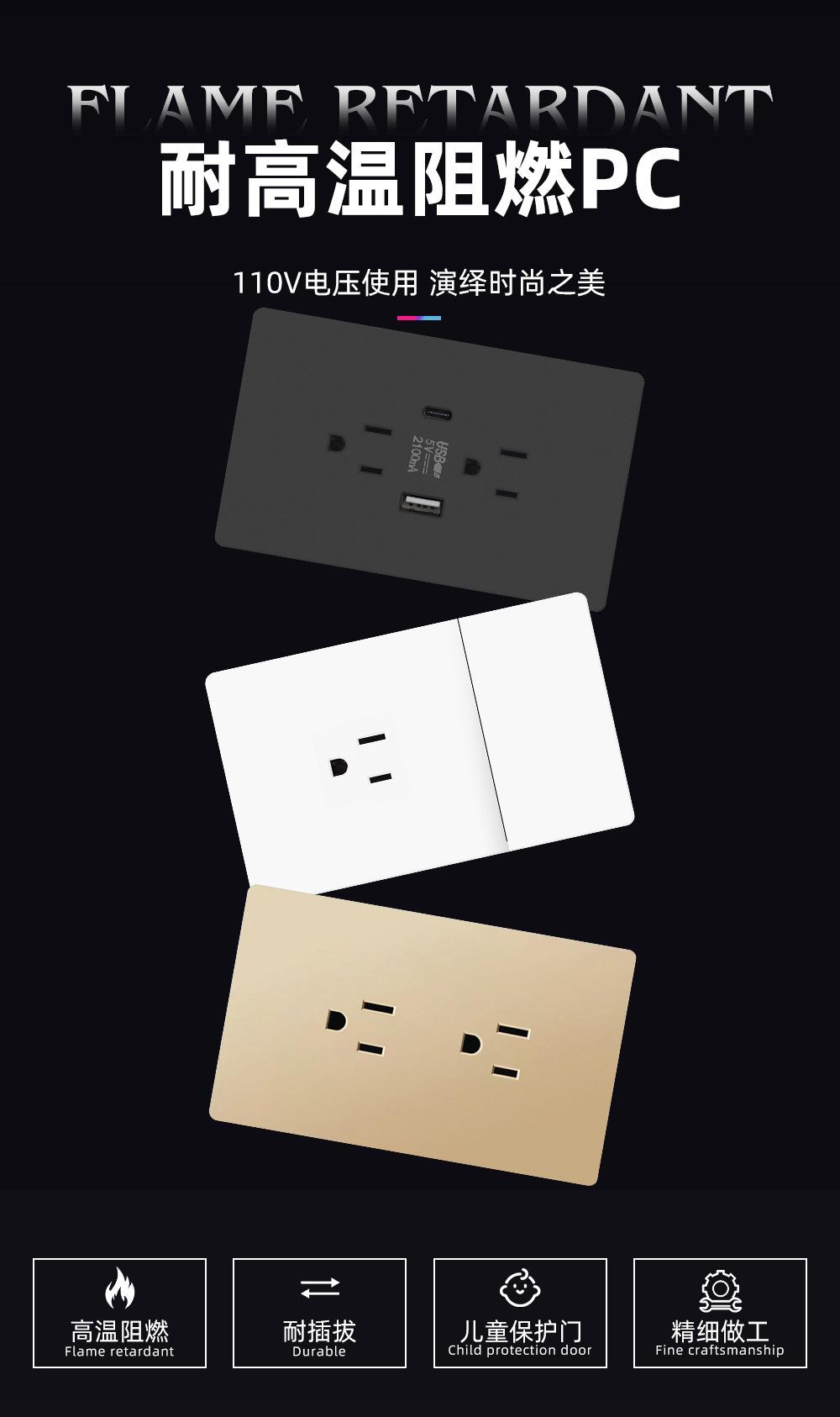 15A Padrão dos EUA Tela Cheia 110V Soquete Duplo Padrão dos EUA Carregamento Tipo dos EUA Painel de Alimentação USB 20W Carregamento Rápido