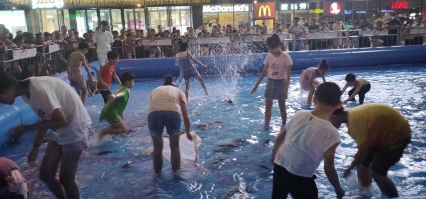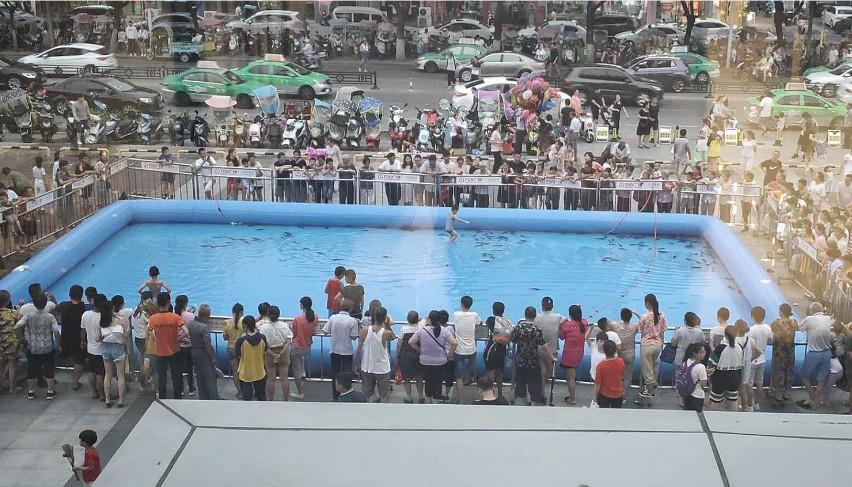 Grande piscina de captura de peixes ao ar livre piscina inflável piscina adulto crianças piscina de remo barco de mão parque aquático móvel
