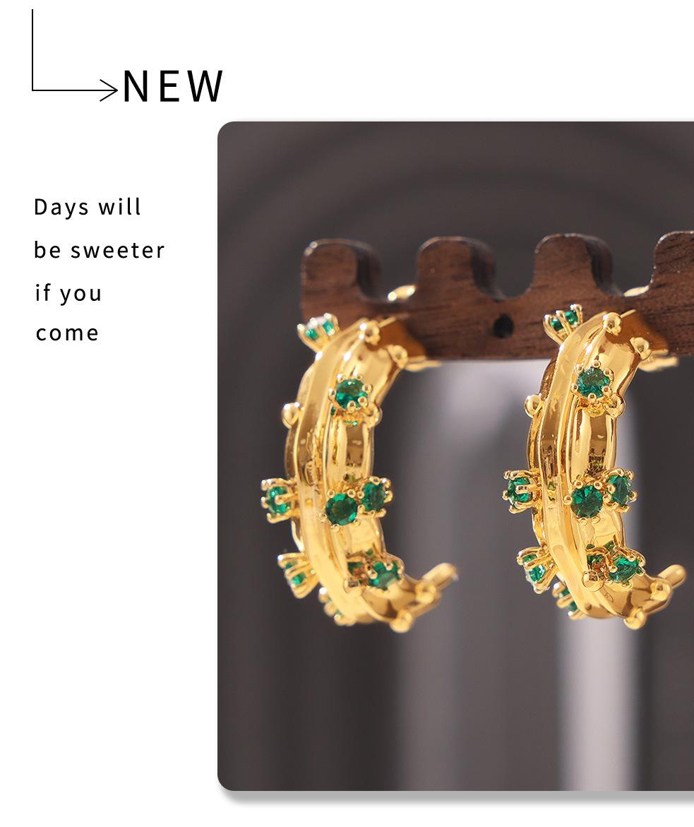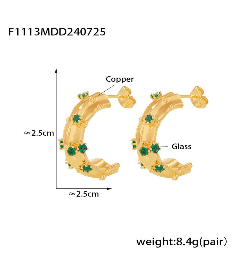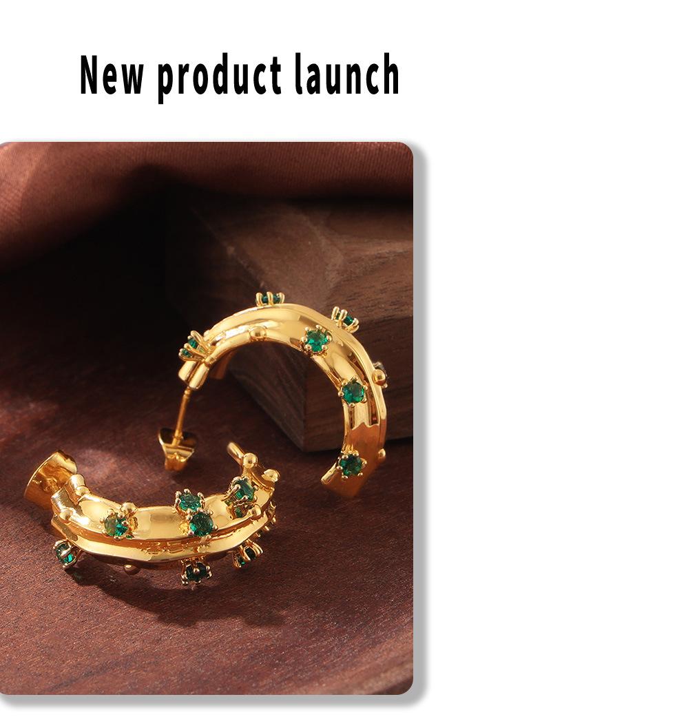 Compre Europeu e Americano Cross-border Novo Geométrico C- em forma de Vidro Verde Brincos de Pedra Cobre 18k Banhado a Ouro Simples Luz Brincos de Luxo para Mulheres no atacado no Joom.pro