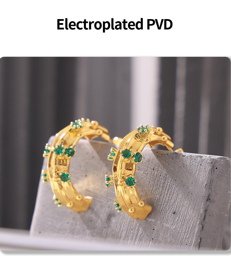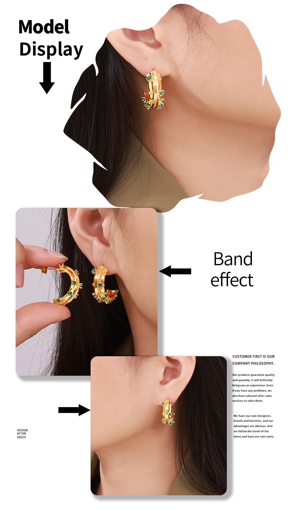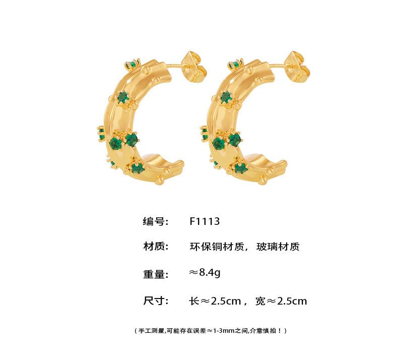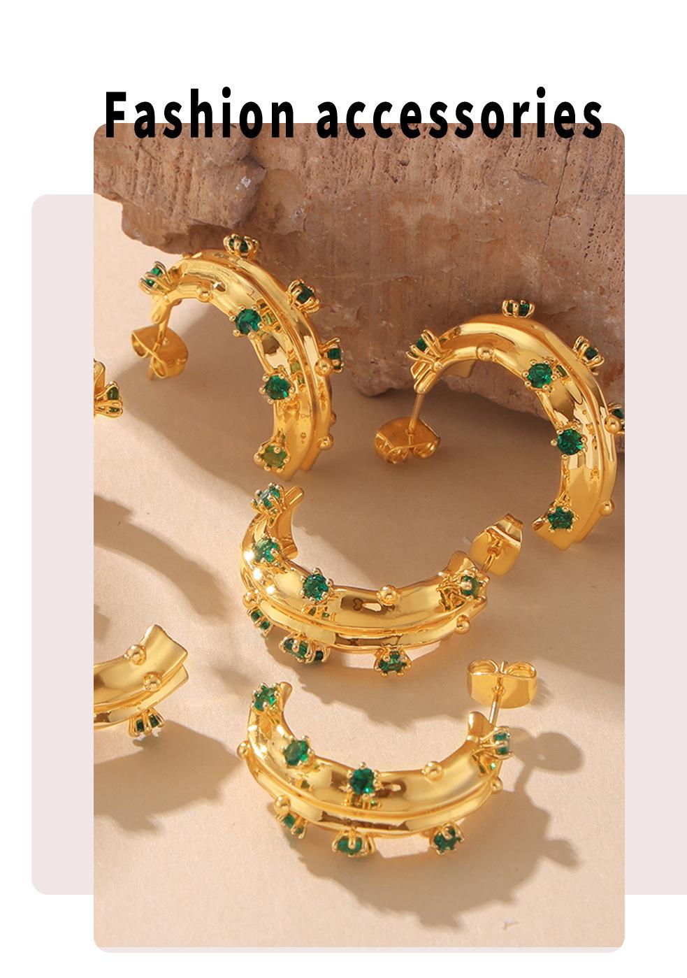 Compre Europeu e Americano Cross-border Novo Geométrico C- em forma de Vidro Verde Brincos de Pedra Cobre 18k Banhado a Ouro Simples Luz Brincos de Luxo para Mulheres no atacado no Joom.pro