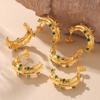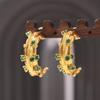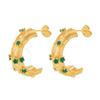 Europeu e Americano Cross-border Novo Geométrico C- em forma de Vidro Verde Brincos de Pedra Cobre 18k Banhado a Ouro Simples Luz Brincos de Luxo para Mulheres