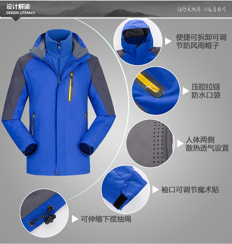 Jaqueta Impermeável de Inverno para Exterior para Homens e Mulheres, Conjunto de Duas Peças Removível, Jaqueta de Montanhismo Três-em-Um, Leve