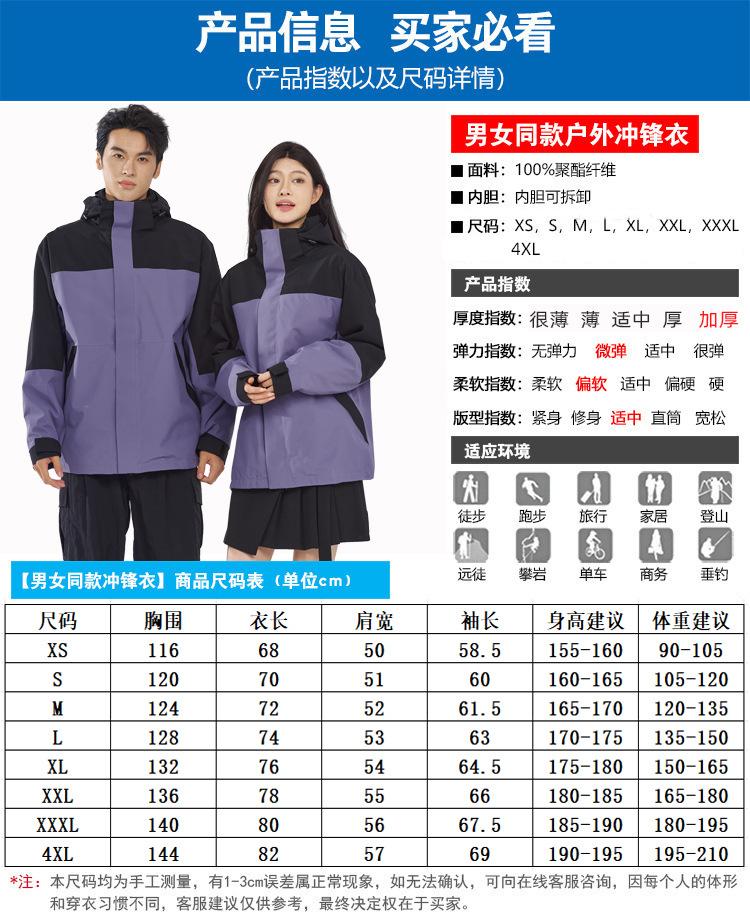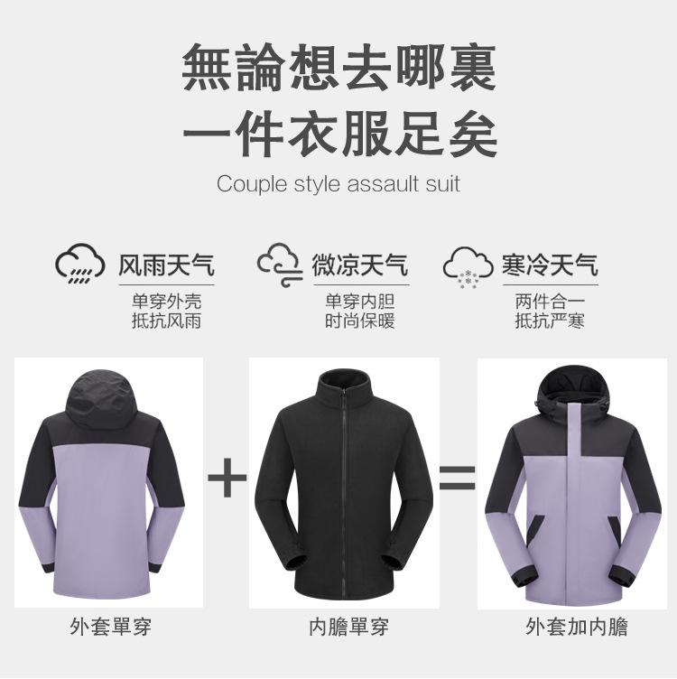 2024 Nova jaqueta adesiva ao ar livre para homens e mulheres Duas peças três em um à prova de vento à prova d'água respirável traje de montanhismo
