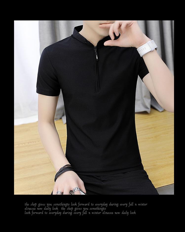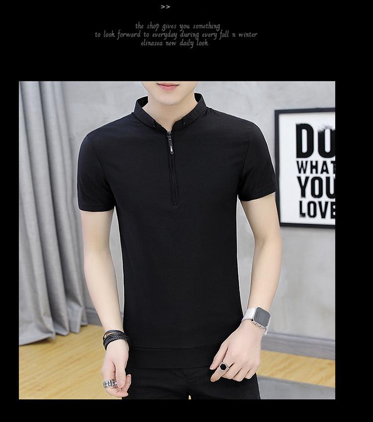 Compre Verão Nova Camisa Polo Empresarial Masculina Manga Curta Versátil Gola Alta Camiseta Masculina Camiseta Básica Roupa de Casal Trbottomyy no atacado no Joom.pro
