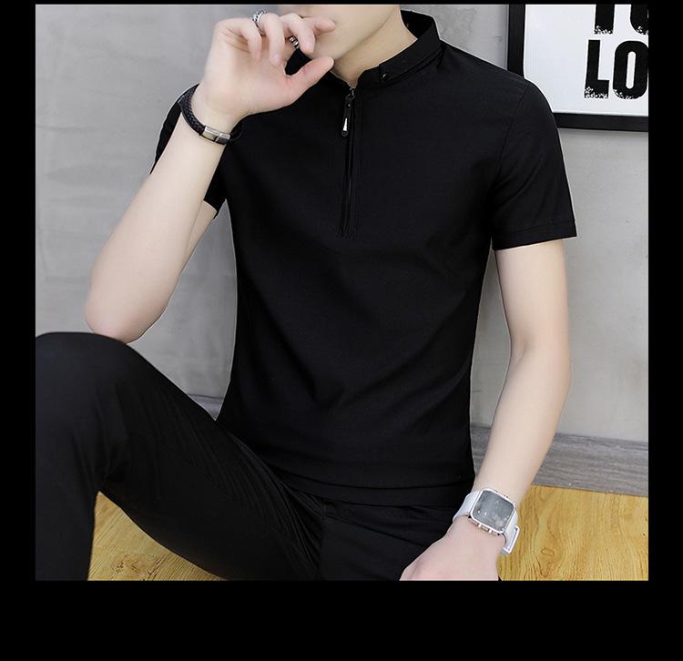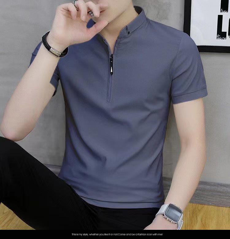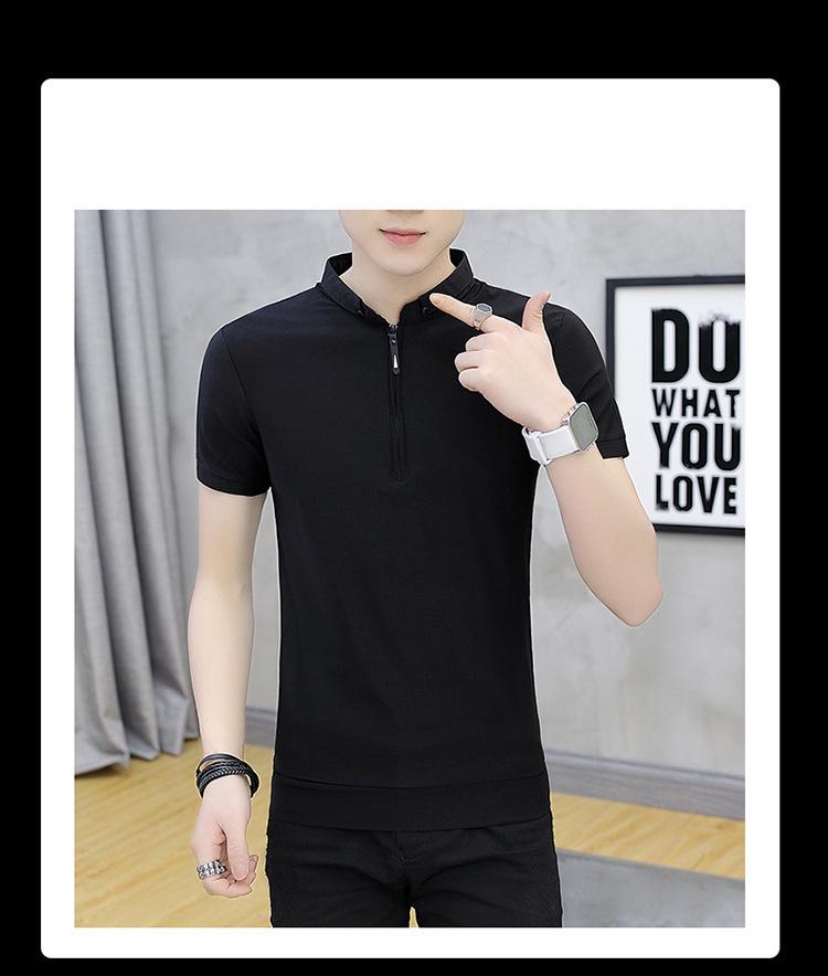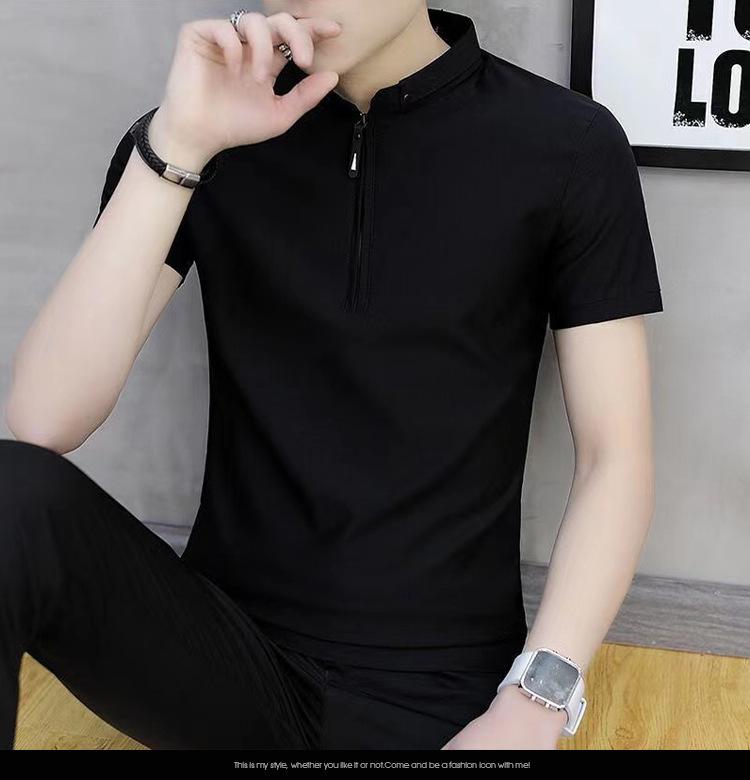 Verão Nova Camisa Polo Empresarial Masculina Manga Curta Versátil Gola Alta Camiseta Masculina Camiseta Básica Roupa de Casal Trbottomyy