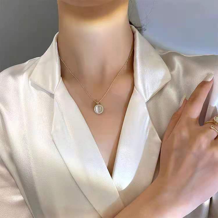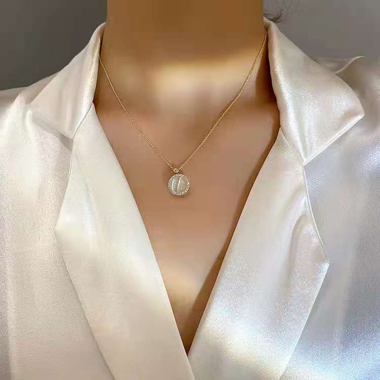 Compre Colar de pedra de olho de gato rotativo por atacado de fábrica feminino colar alto simples 2021 Nova corrente de clavícula da moda no atacado no Joom.pro