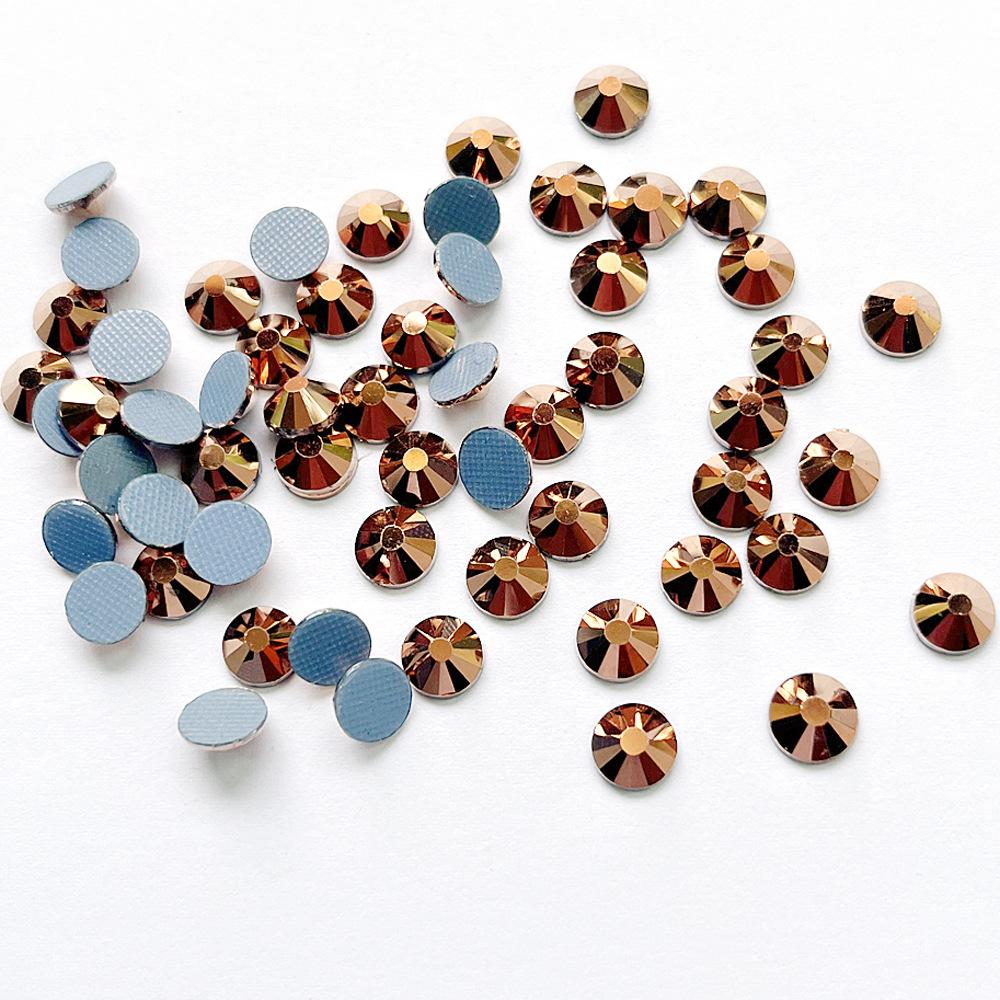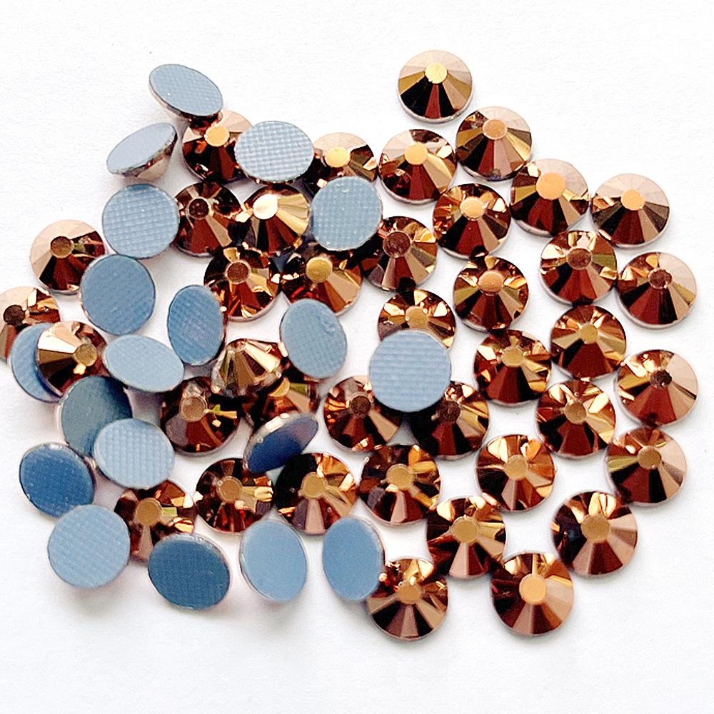 Fornecimento de imitação de ouro rosa transfronteiriço Ao cola broca fundo plano diamante cristal vidro strass acessórios de roupas DIY atacado