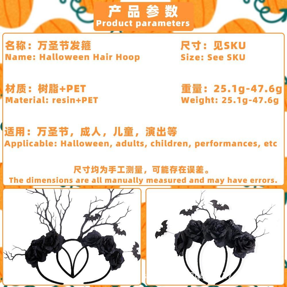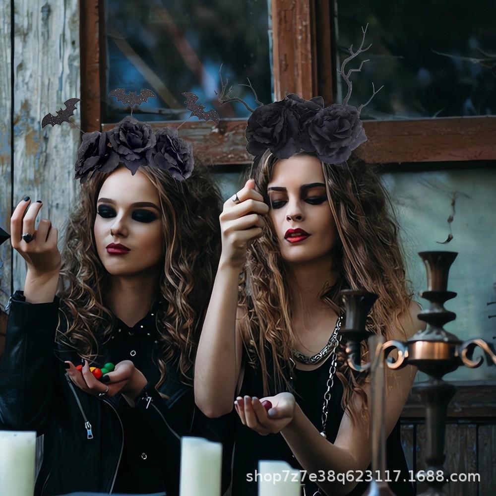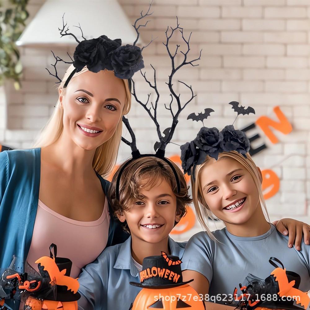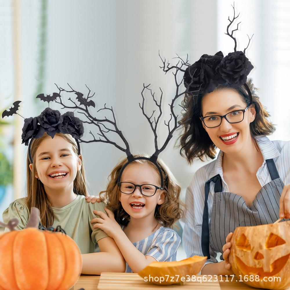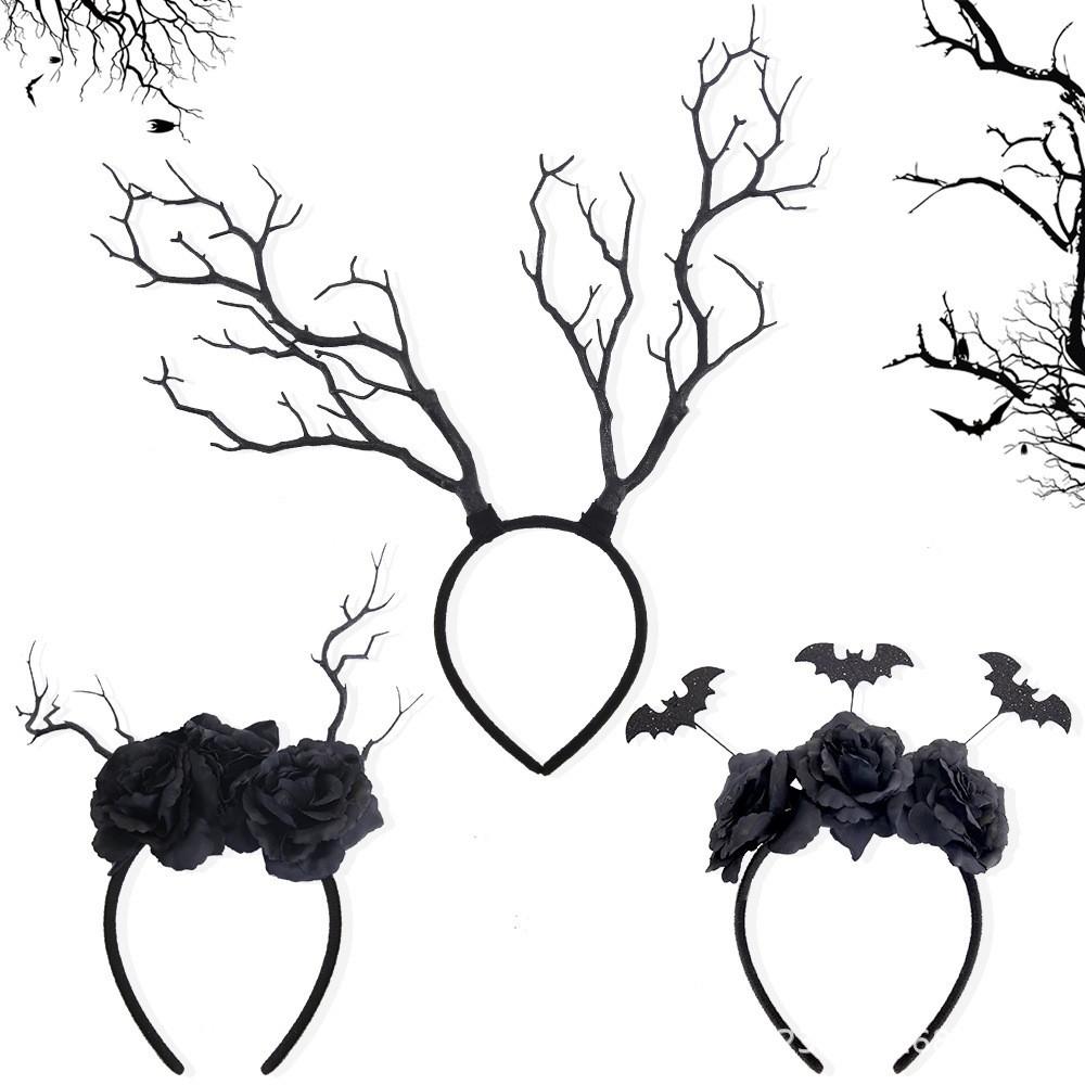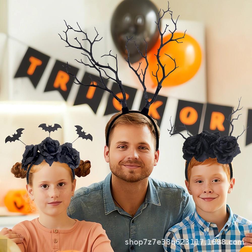 Halloween black dead branch headband, Halloween bat black flower headband, Halloween dead branches and black flower headband