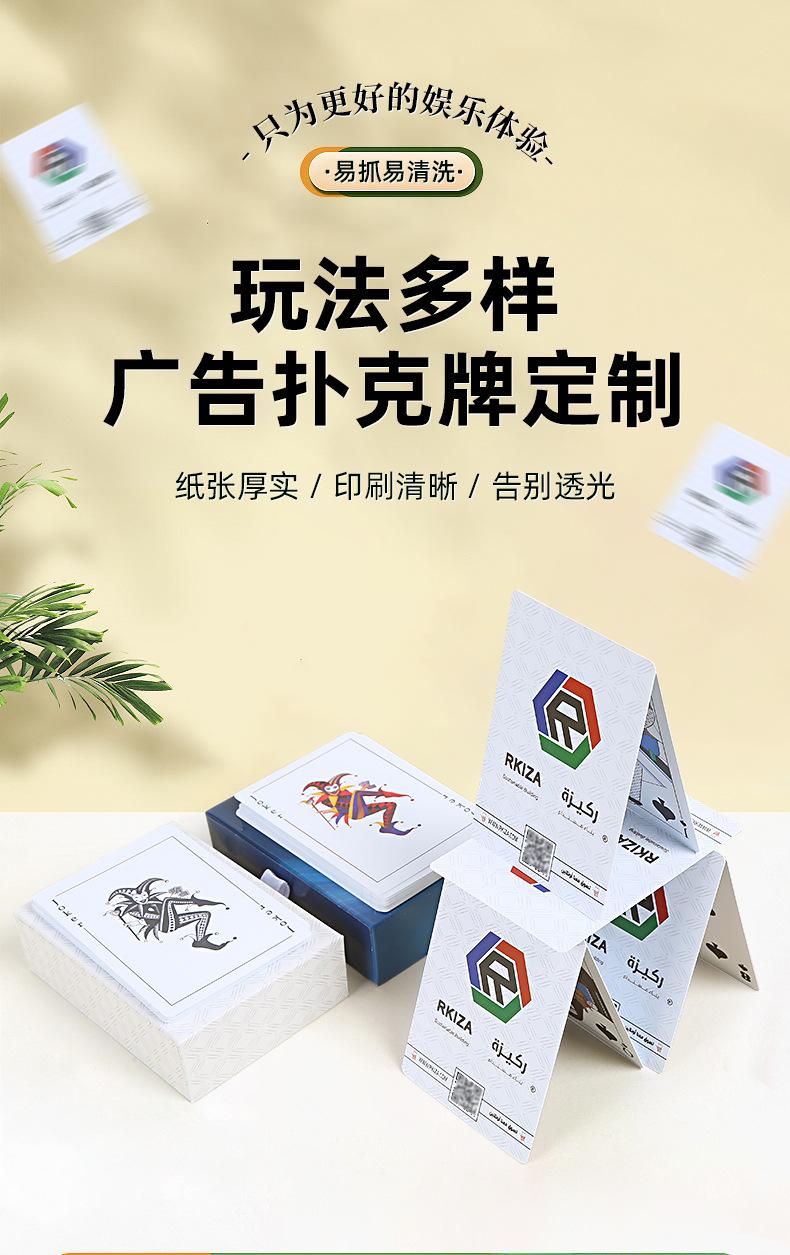 Cartas de baralho personalizadas, cartas de baralho de plástico PCV para publicidade doméstica, cartas de jogo de tabuleiro, cartas de baralho espessadas, fabricante de atacado