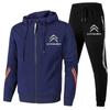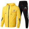 Compre Casual Ordinária Calças de manga comprida Jaqueta Esportes Com Capuz Primavera e Outono Cor Sólida Conjunto de logotipo de terno esportivo casual masculino no atacado no Joom.pro