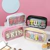 Nova Carta Bordada Transparente Bolsa de Higiene Portátil Viagem Transparente Cosmético Bolsa PVC Armazenamento À Prova D' Água
