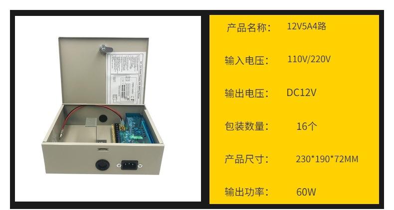 Caixa de alimentação de 12V5A de 4 canais, fonte de alimentação centralizada