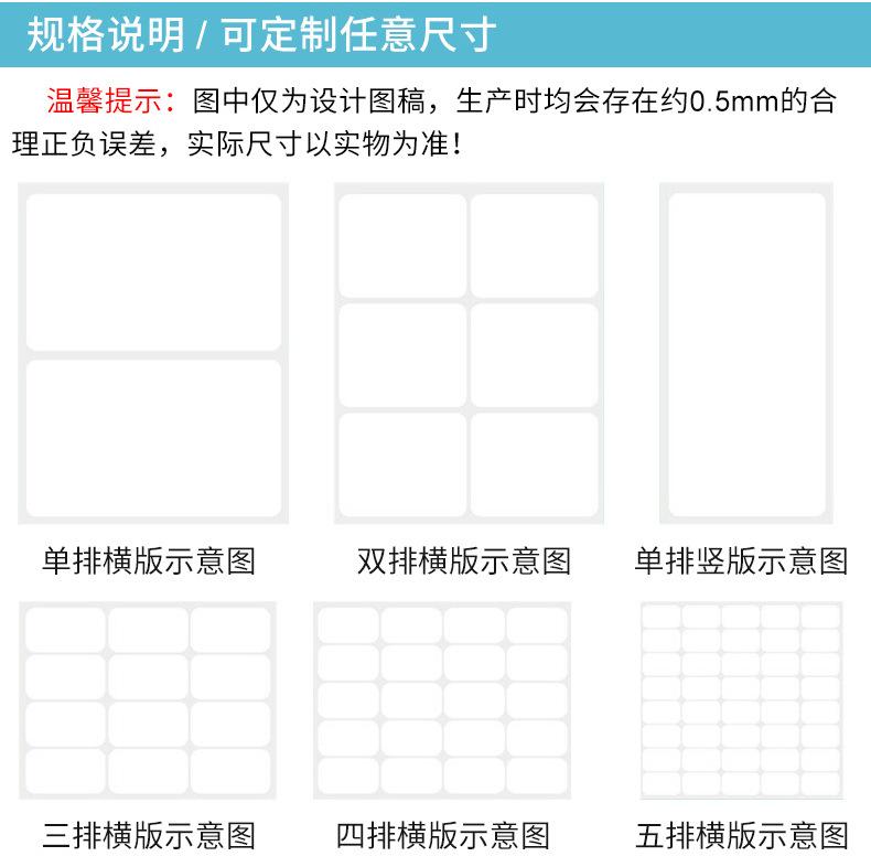 30-100 Papel Revestido Tripla Prova Autoadesivo Impressão Etiqueta Adesivo Rolo Personalizado Código de Barras Colorido Impressão em Branco Transparente