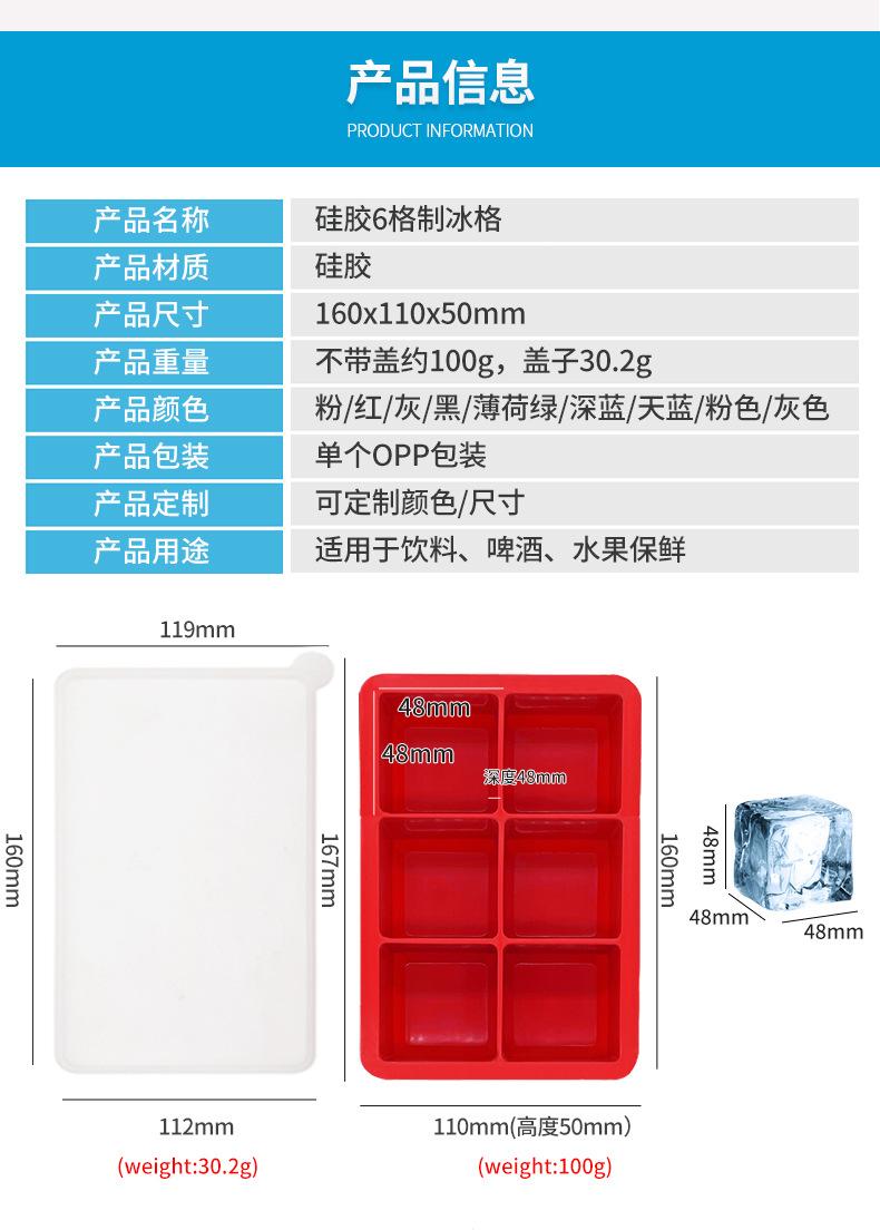 Six-compartment ice tray, silicone ice tray, square ice tray