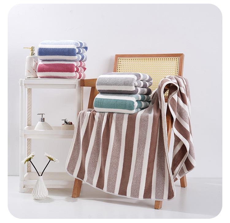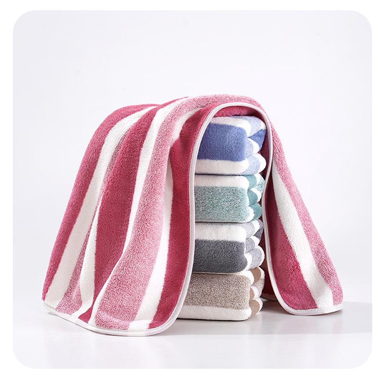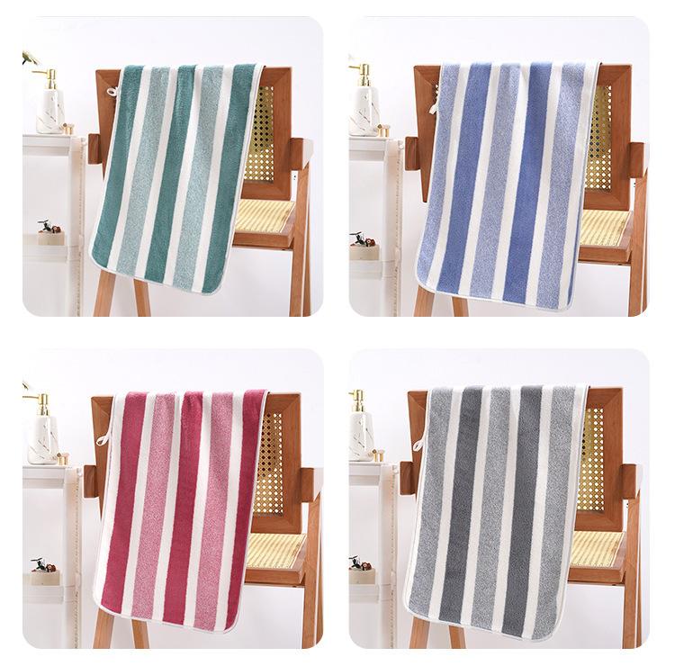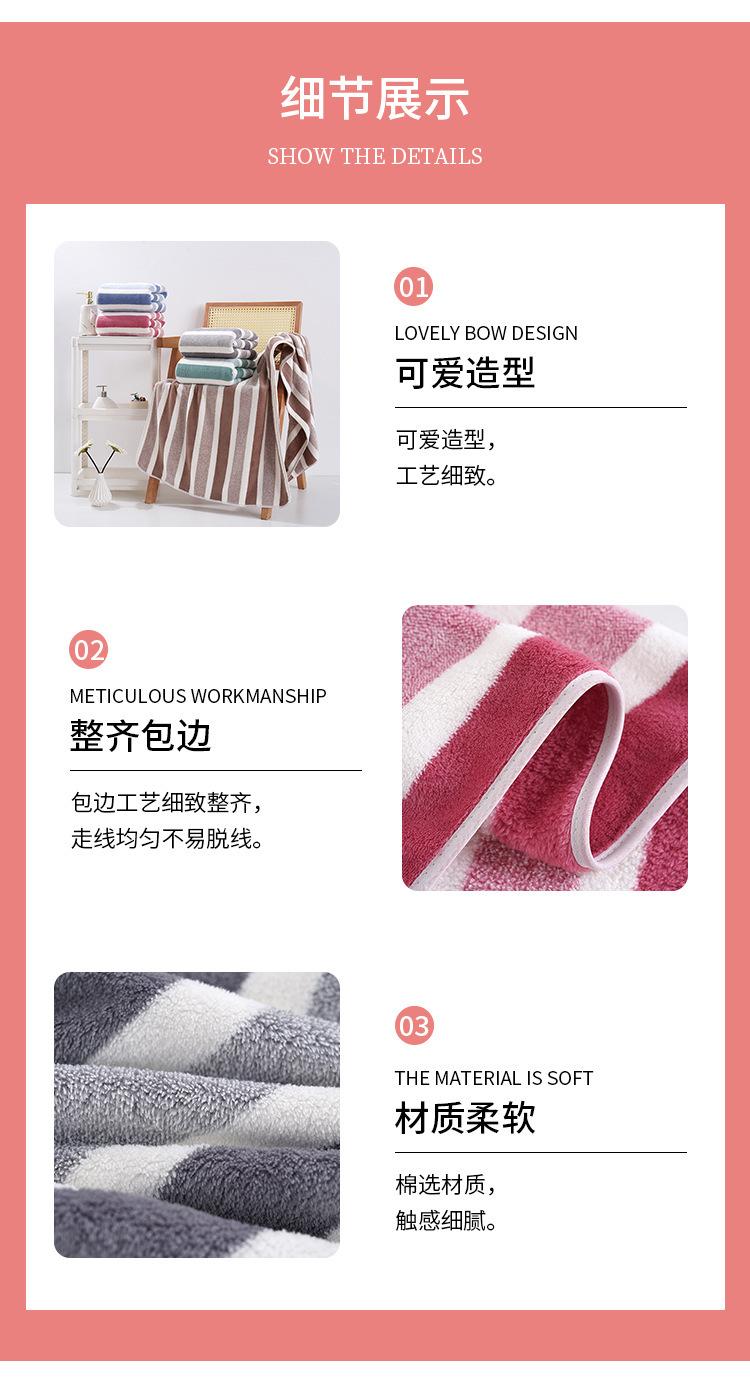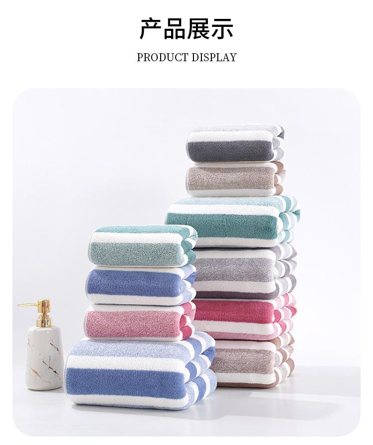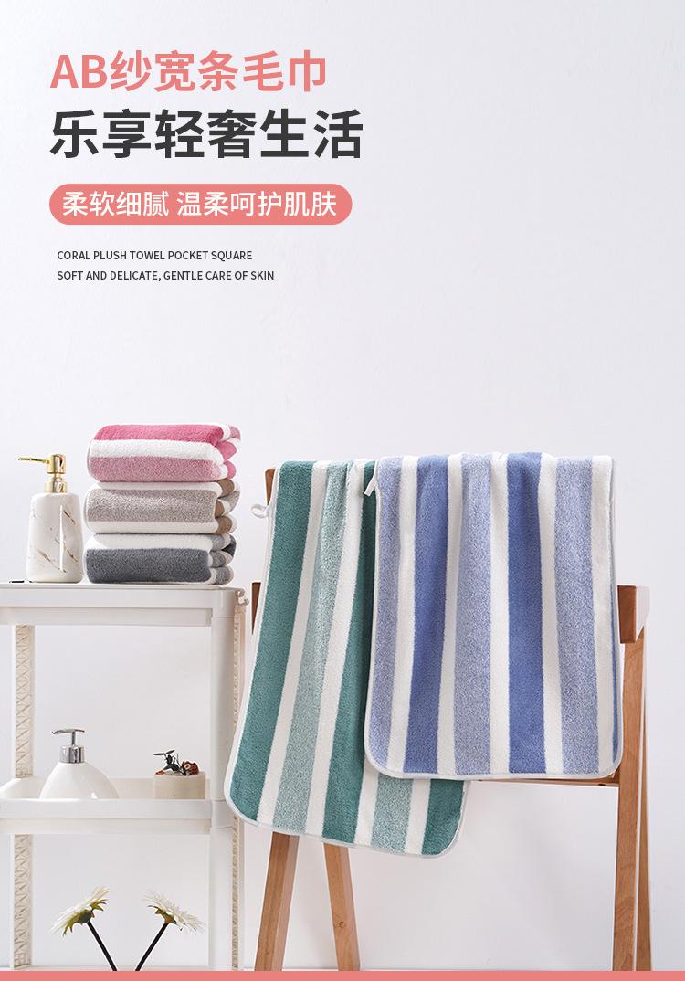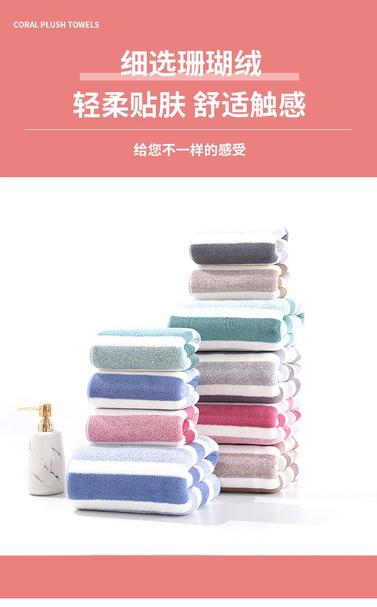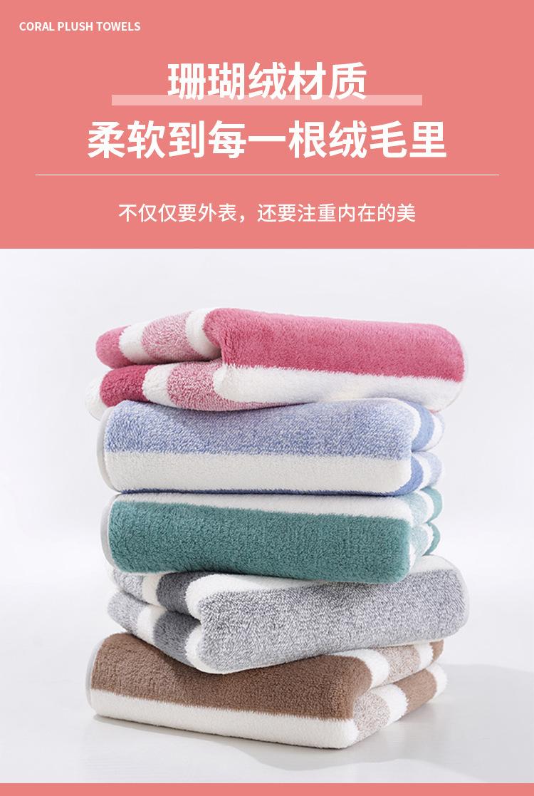 Toalha listrada de lã coral atacado, toalha de limpeza macia e absorvente sem fiapos, toalha de rosto espessada para homens e mulheres, toalha de casal