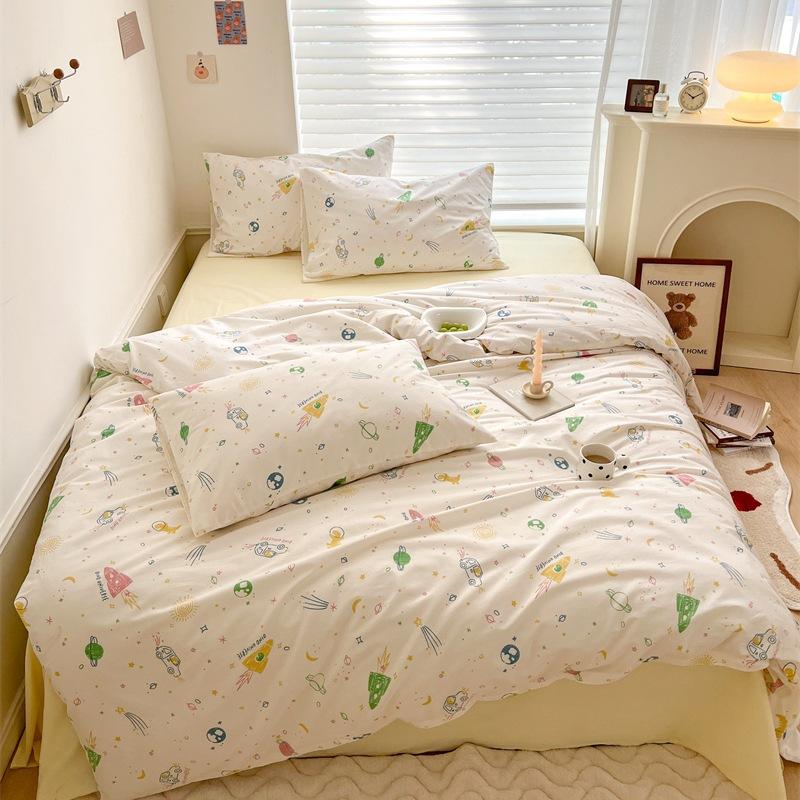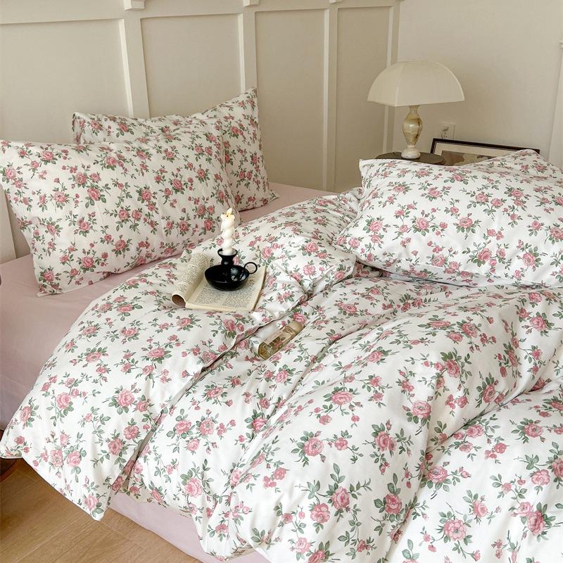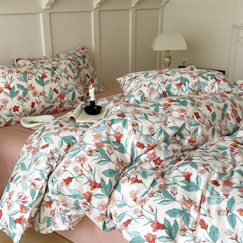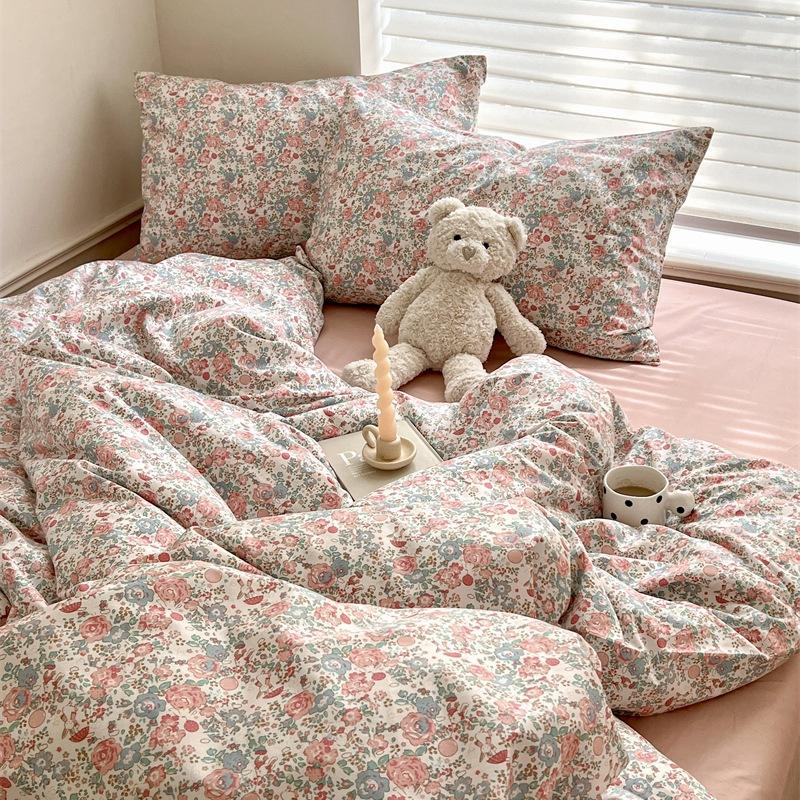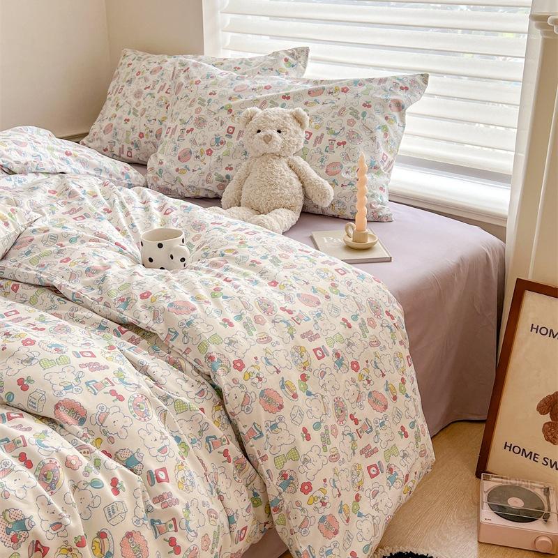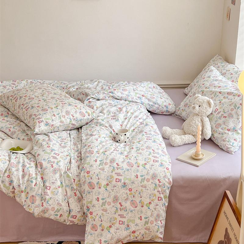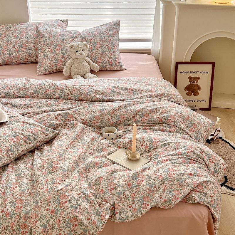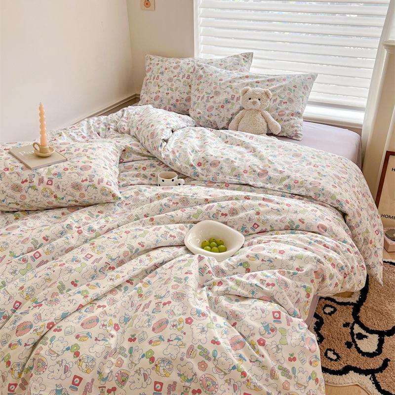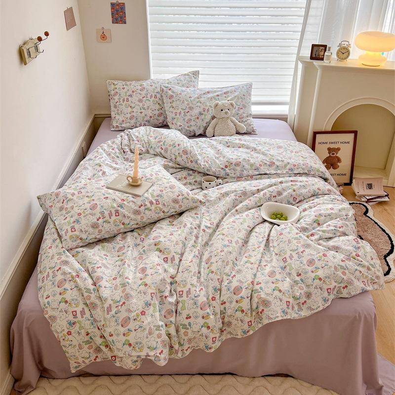 Compre INS Estilo Cartoon Floral Algodão Algodão Cama Conjunto de Quatro Peças Dormitório Estudantil de Três Peças Cama Colcha Capa Lençol 1.8 no atacado no Joom.pro