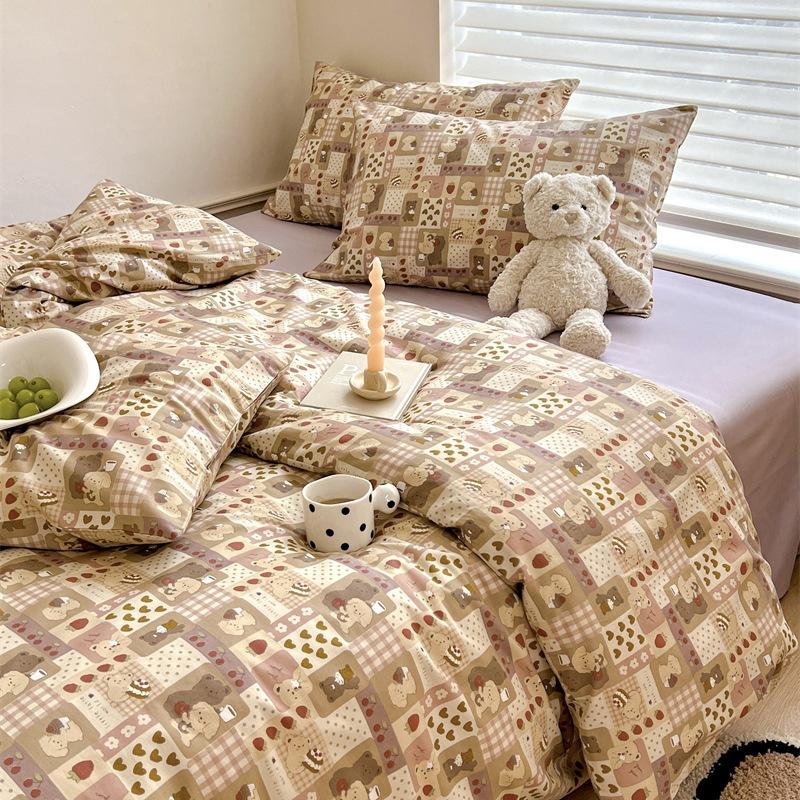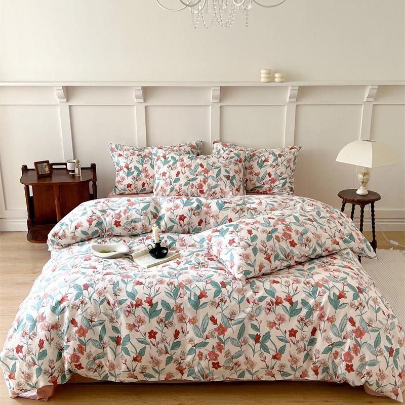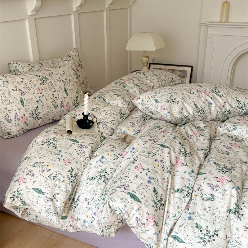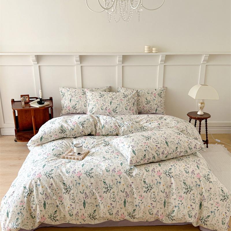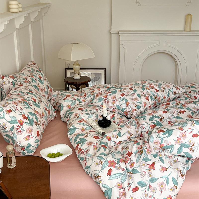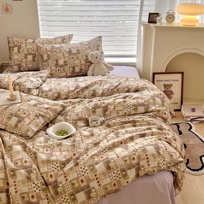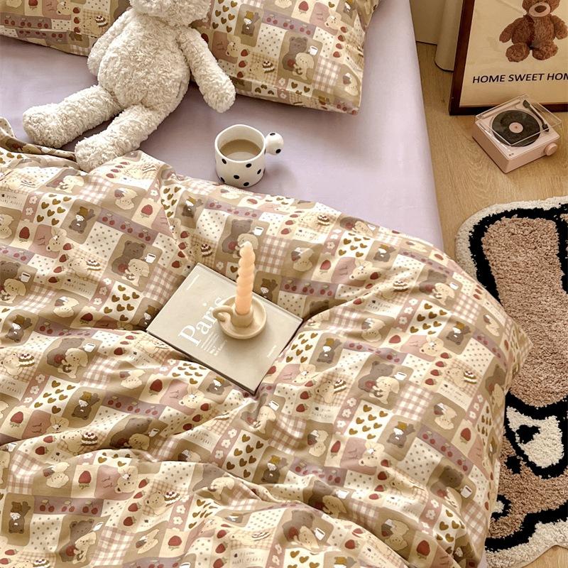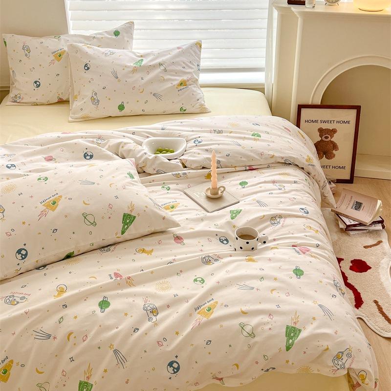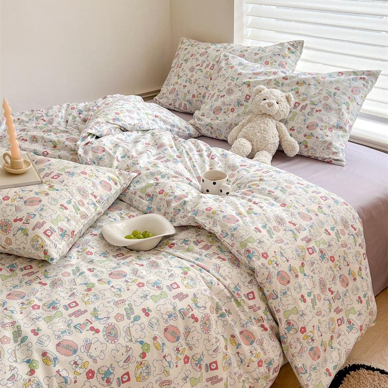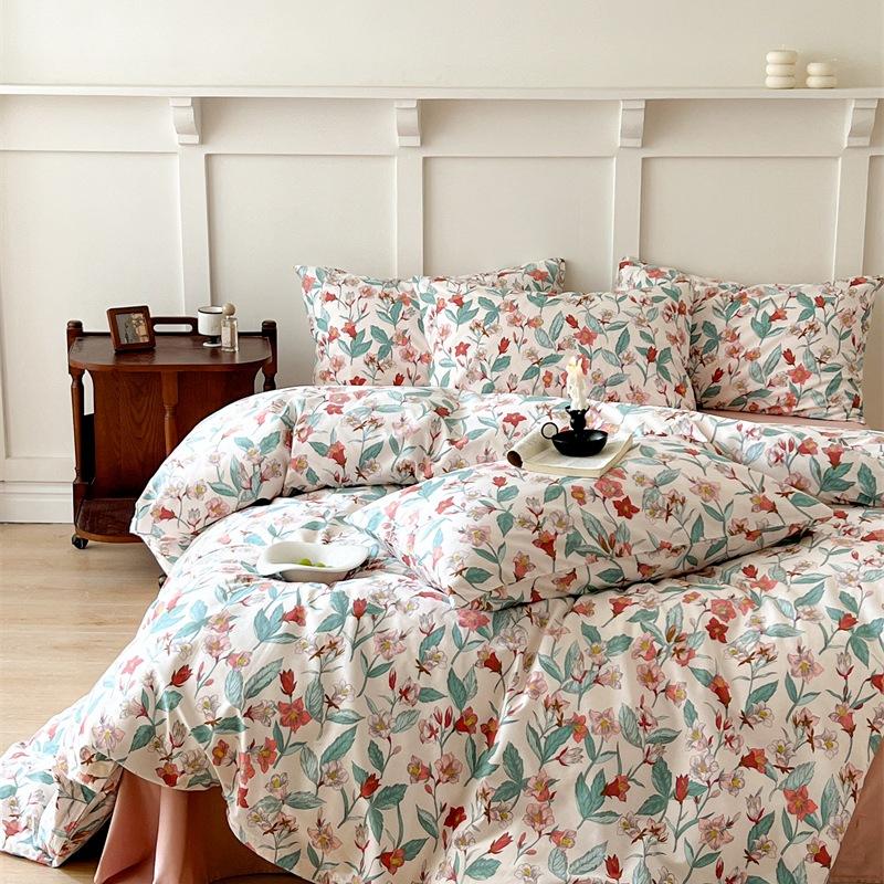 Compre INS Estilo Cartoon Floral Algodão Algodão Cama Conjunto de Quatro Peças Dormitório Estudantil de Três Peças Cama Colcha Capa Lençol 1.8 no atacado no Joom.pro