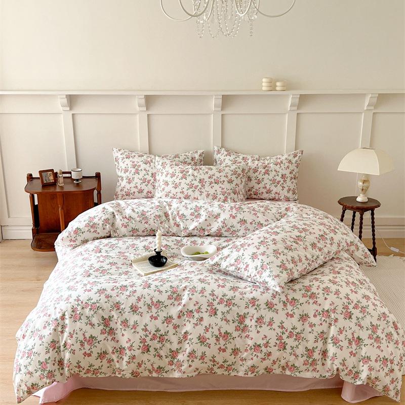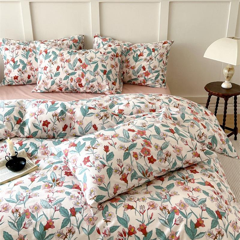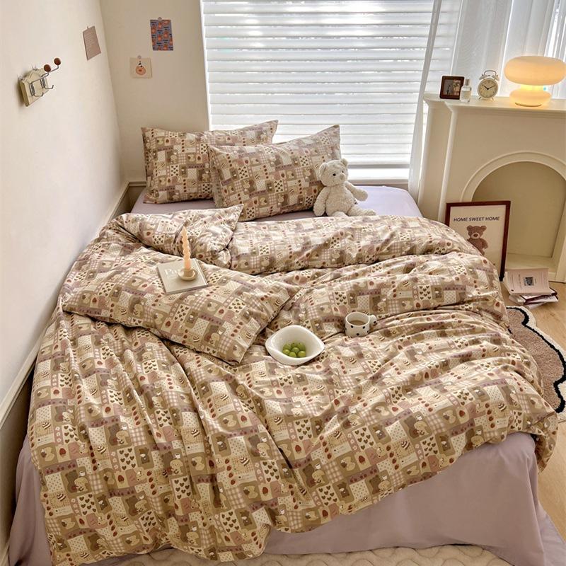 INS Estilo Cartoon Floral Algodão Algodão Cama Conjunto de Quatro Peças Dormitório Estudantil de Três Peças Cama Colcha Capa Lençol 1.8