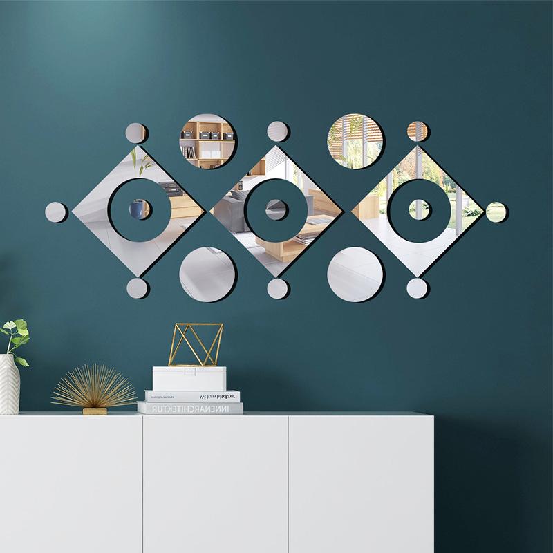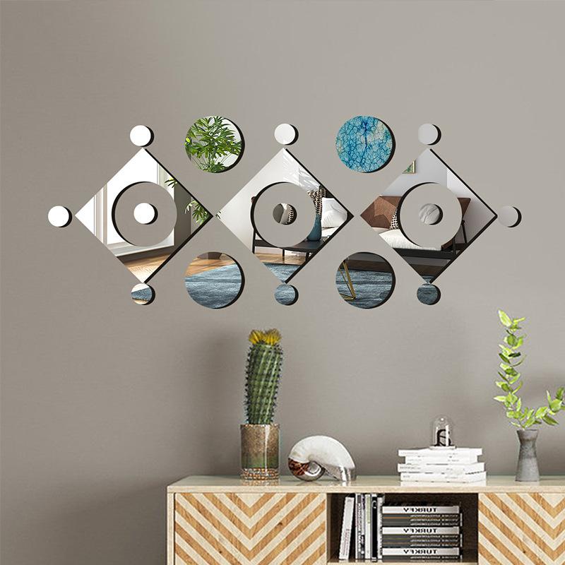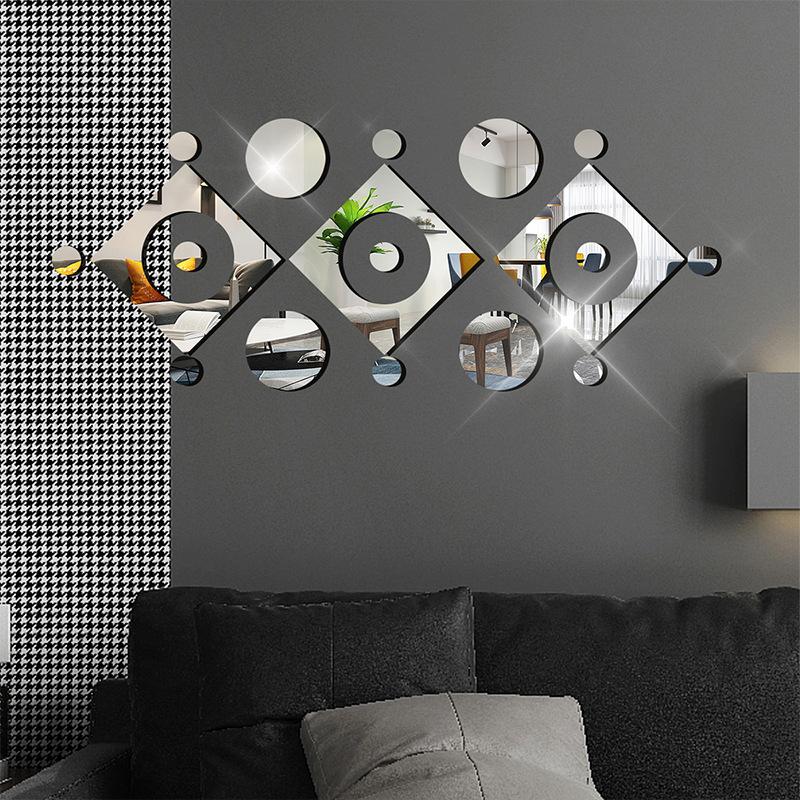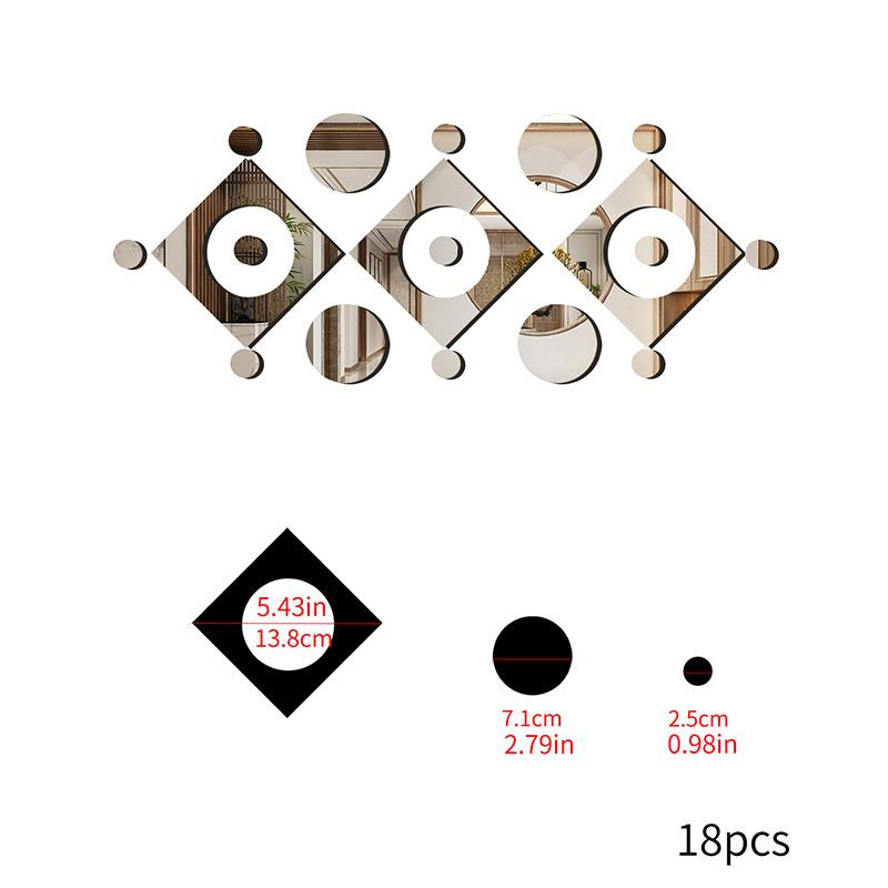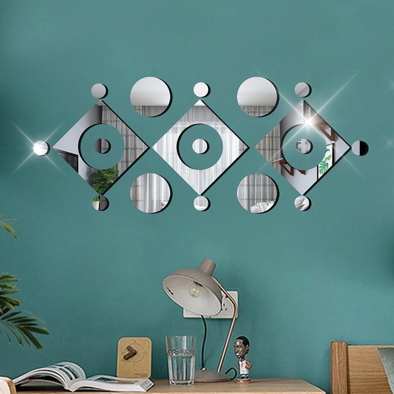 Adesivos de parede de espelho Combinação quadrada Quarto Sala de estar Adesivos de parede Prata Adesivos de parede de espelho decorativo