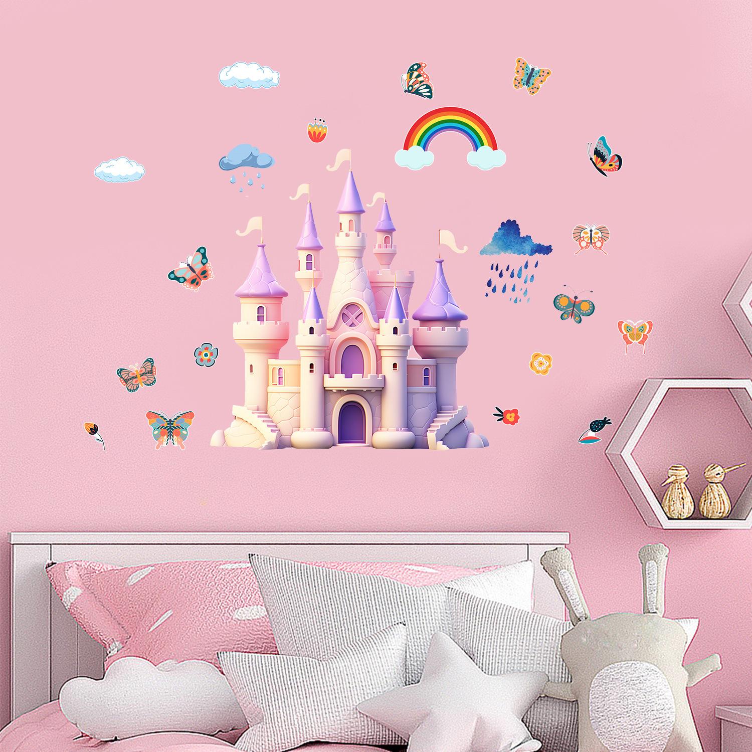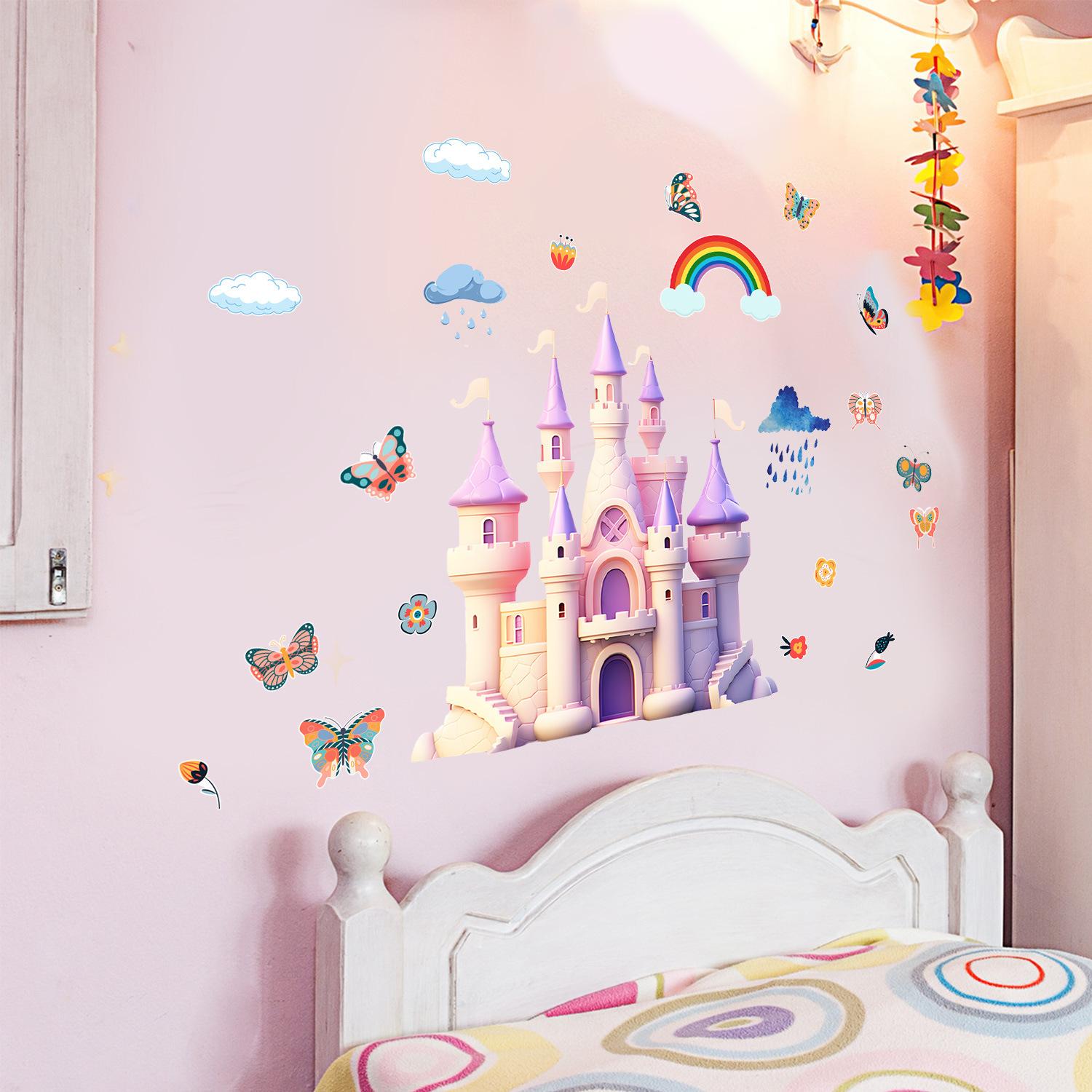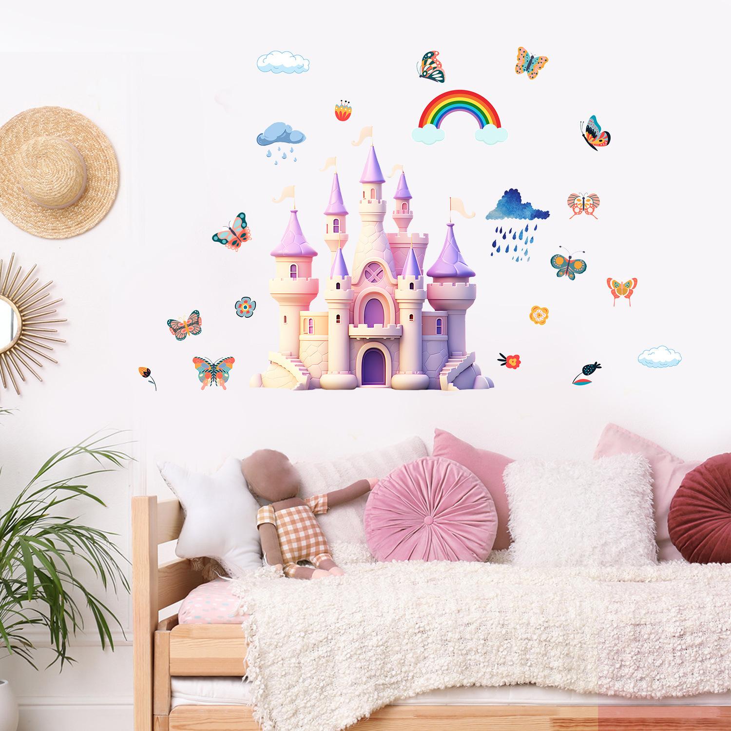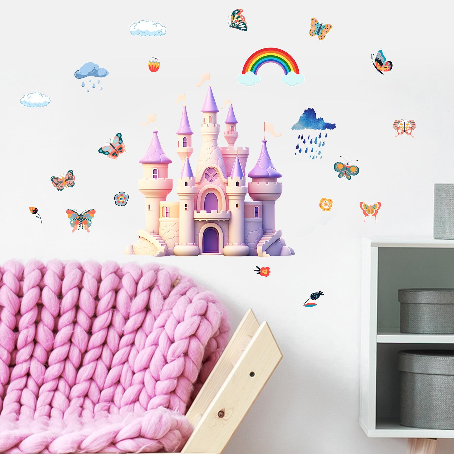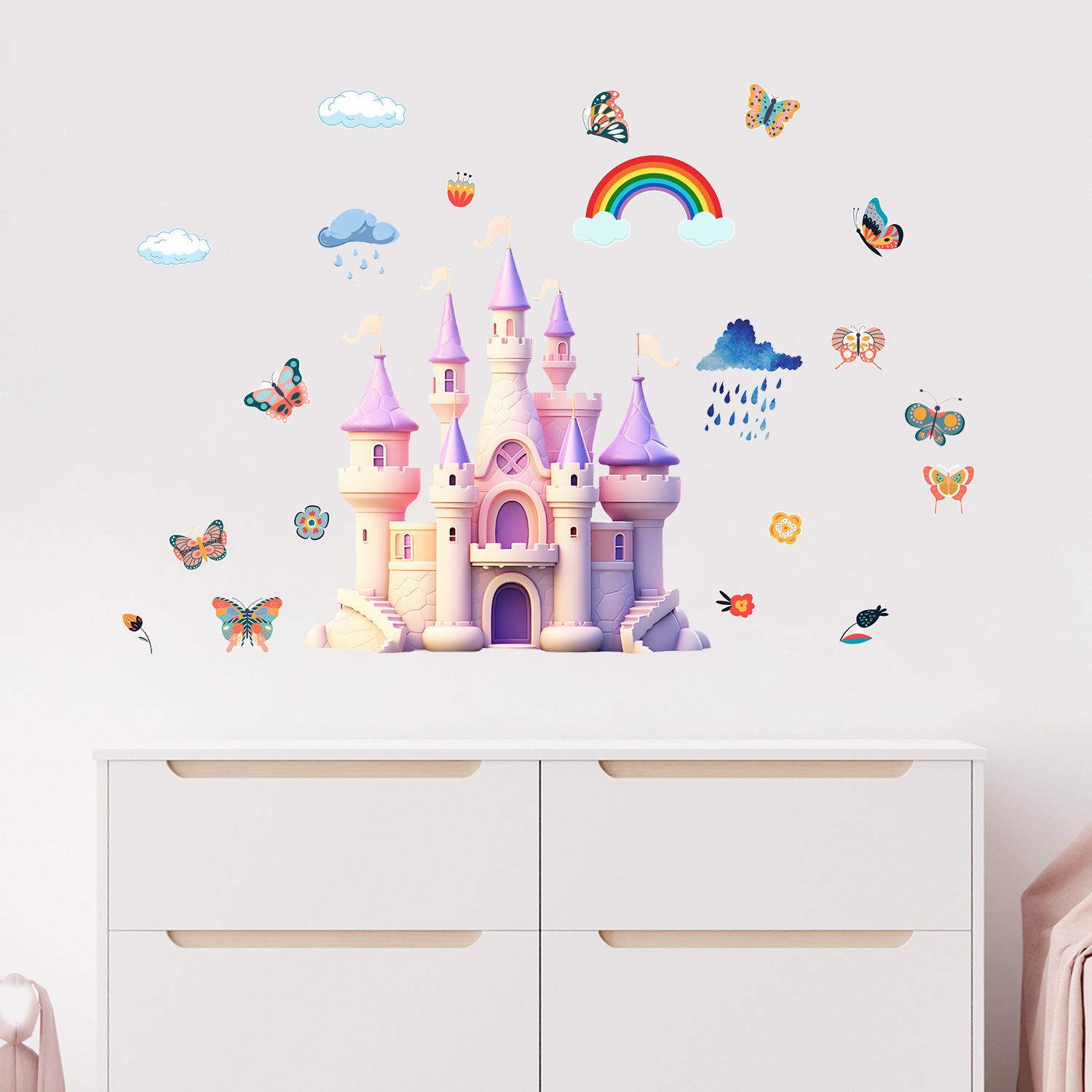 Cross-border Amazon Butterfly Castle Rainbow Wall Stickers Cross-border Sala de Estar Quarto Decoração Quarto Adesivos Adesivos Atacado