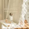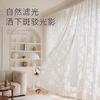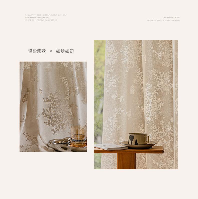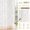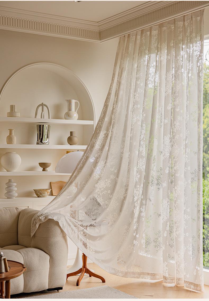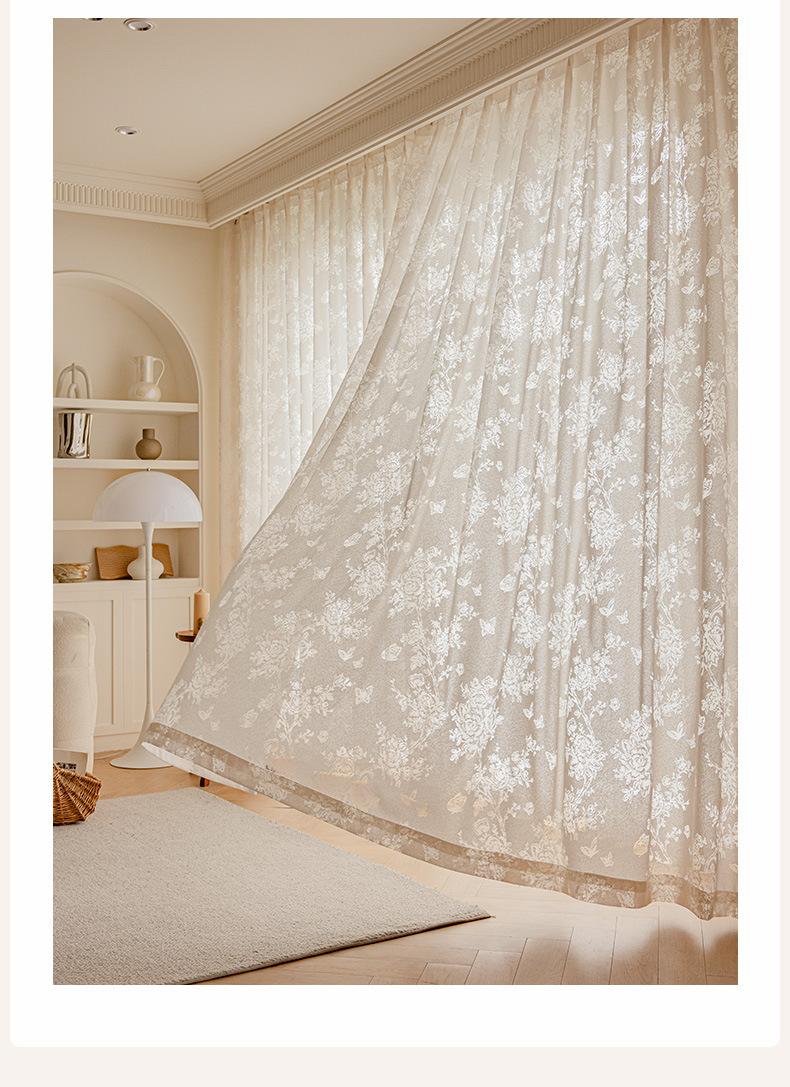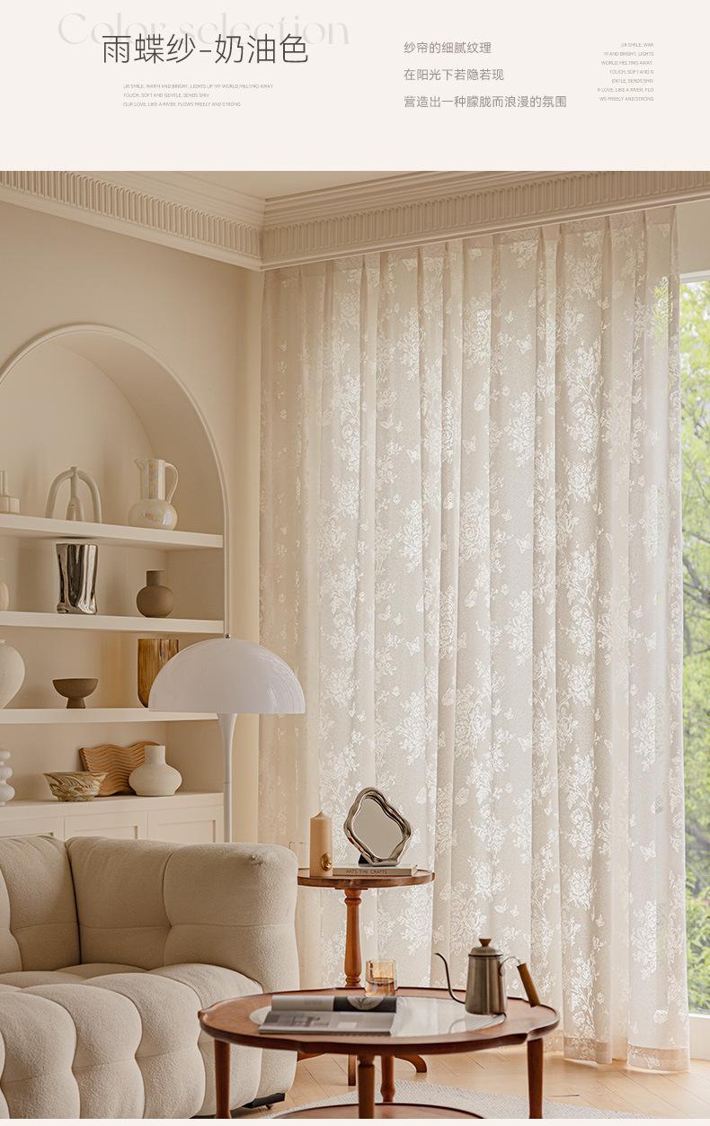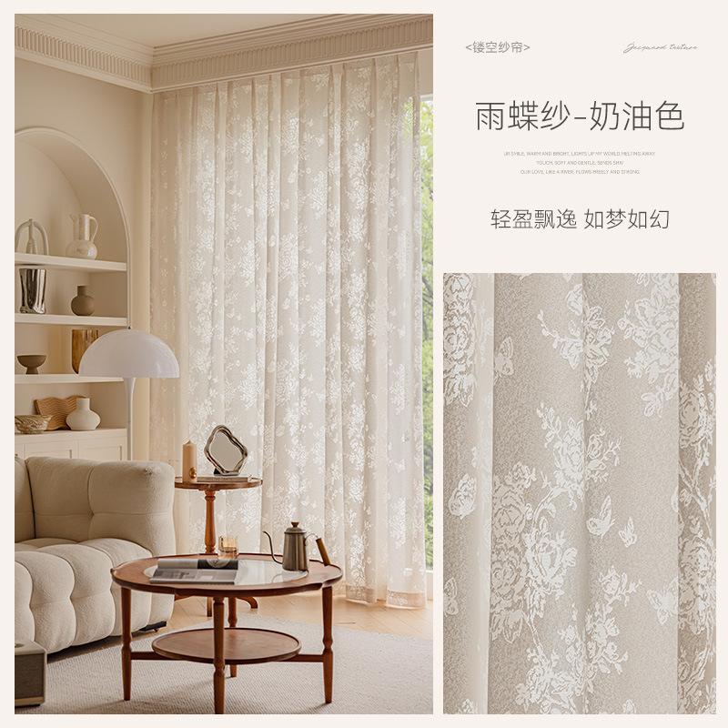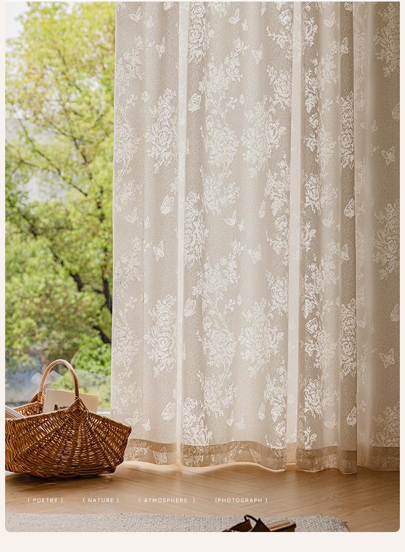 Cortina Voil Borboleta Estilo Francês, Semitransparente e Opaca, Cortina de Janela Embossada Cor Creme Estilo Vintage para Sala de Estar e Quarto para Janela Bay