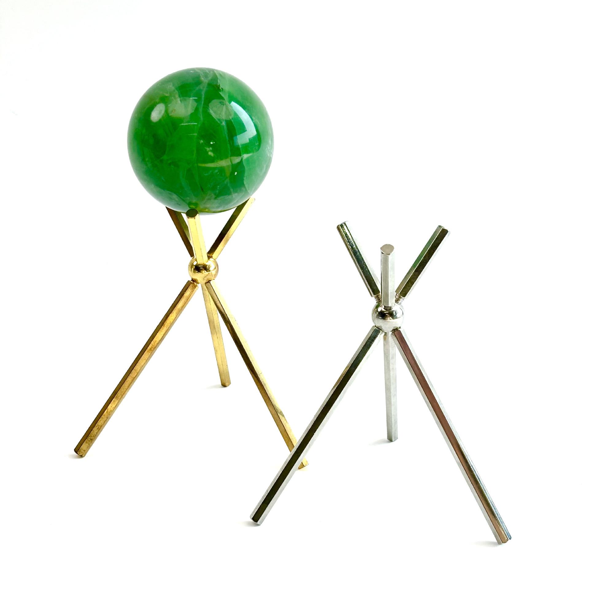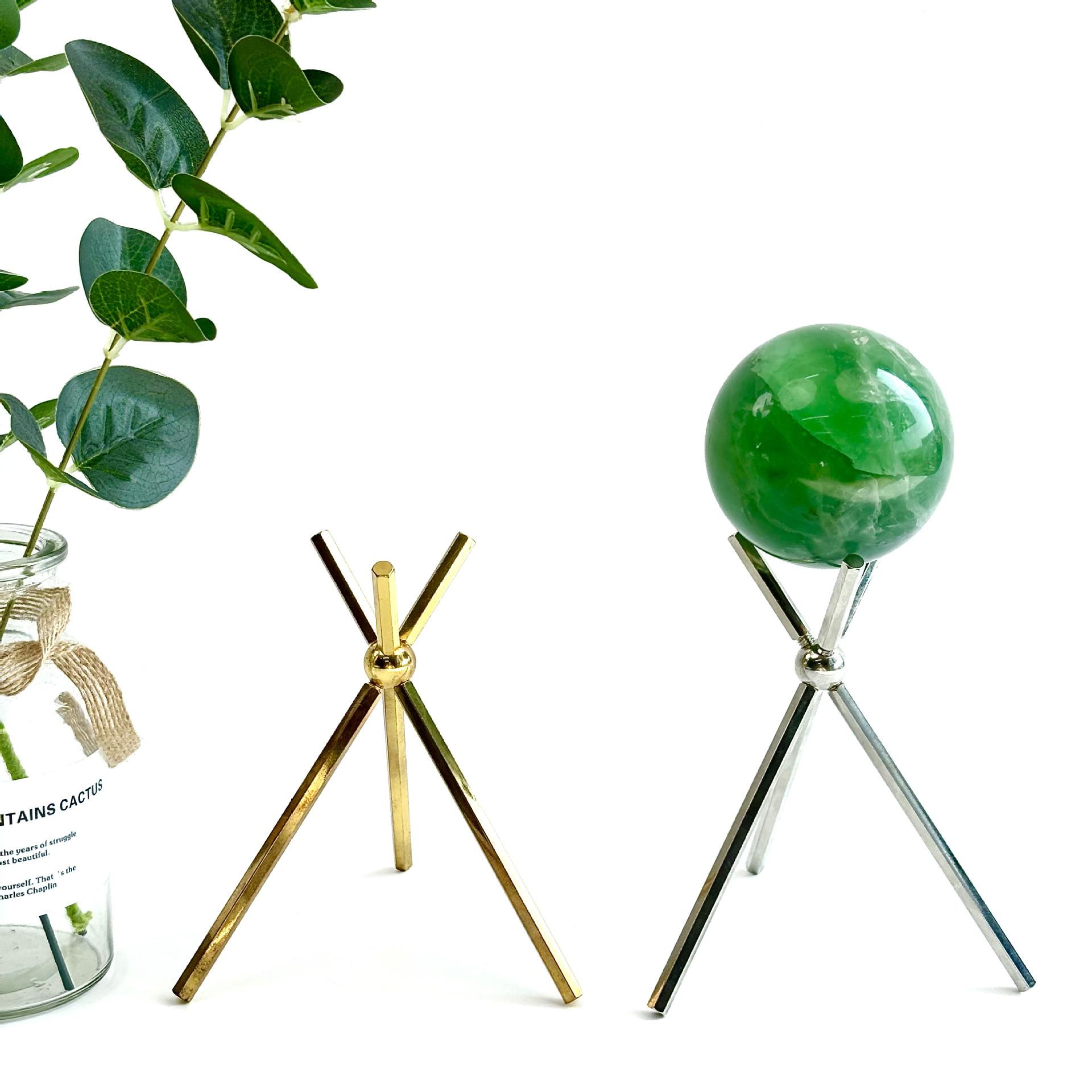 Bola de cristal artesanato base bola titular ovo escultura titular metal triângulo vintage antigo
