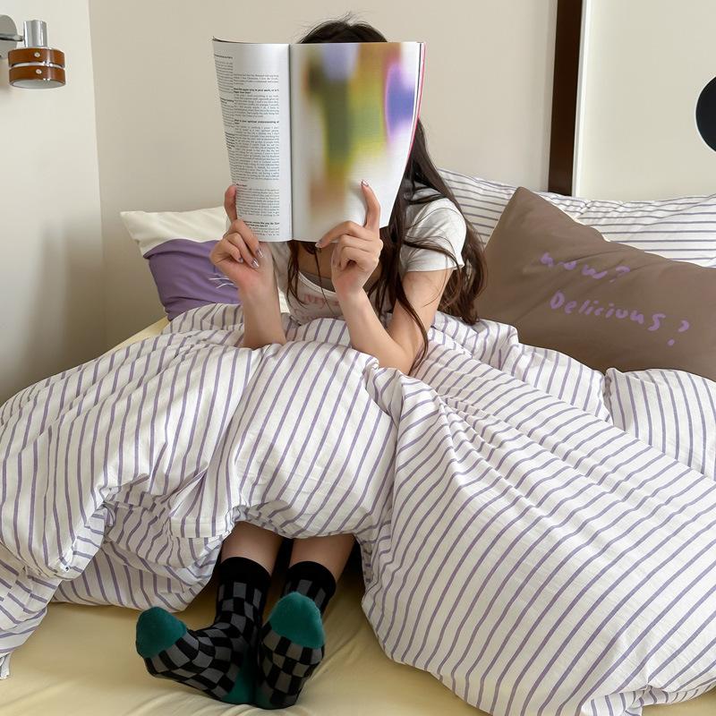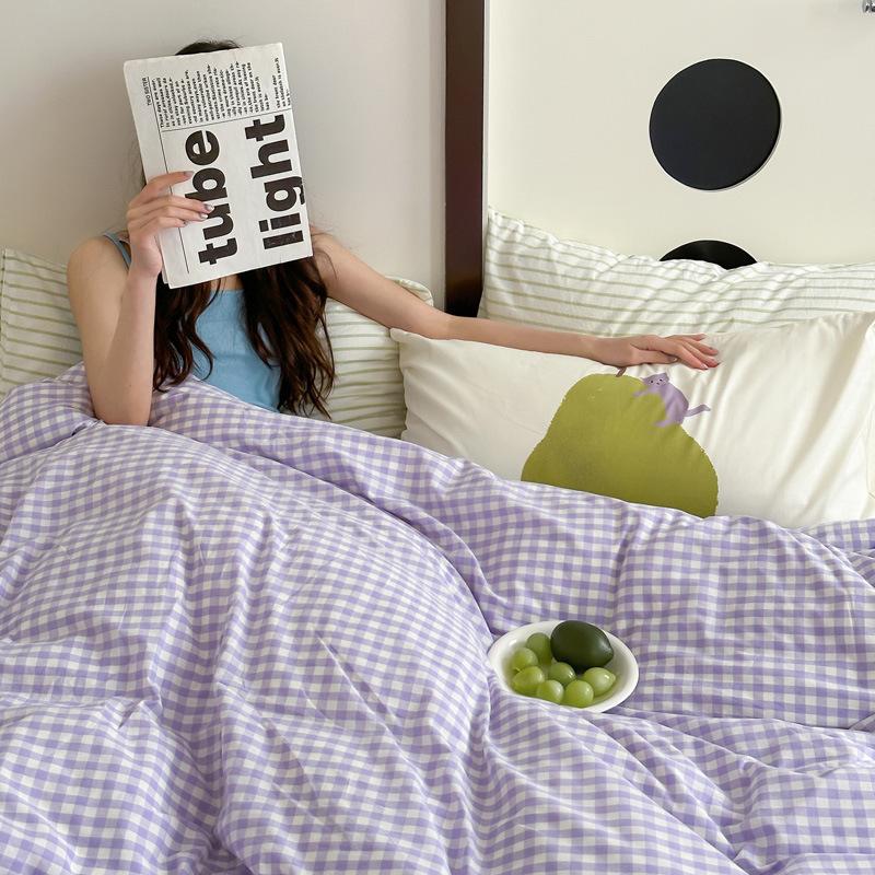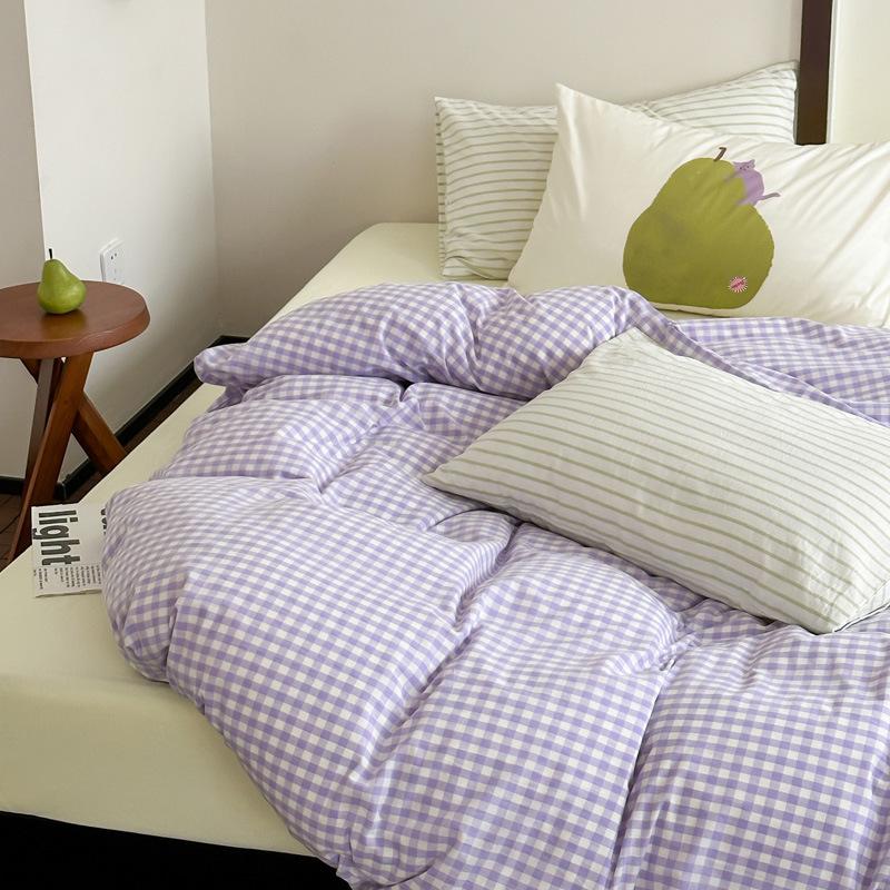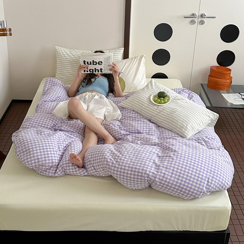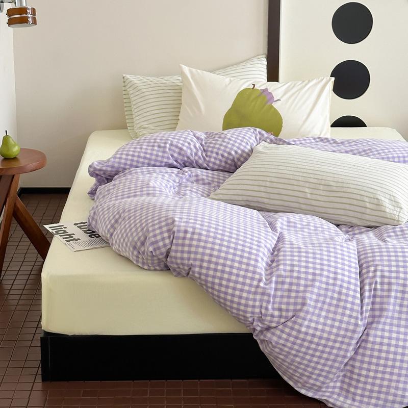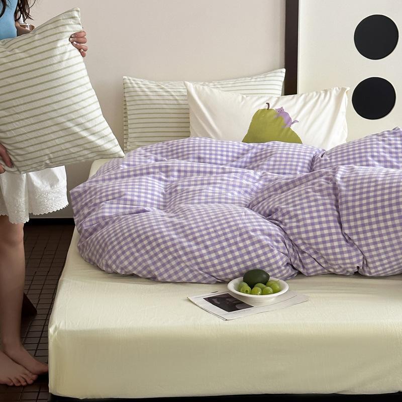 Conjunto de Quatro Peças Ins Style Algodão Xadrez Listra Mix and Match Capa de Colcha Lençol Algodão Puro Fresco Roupa de Cama de Algodão Lavado