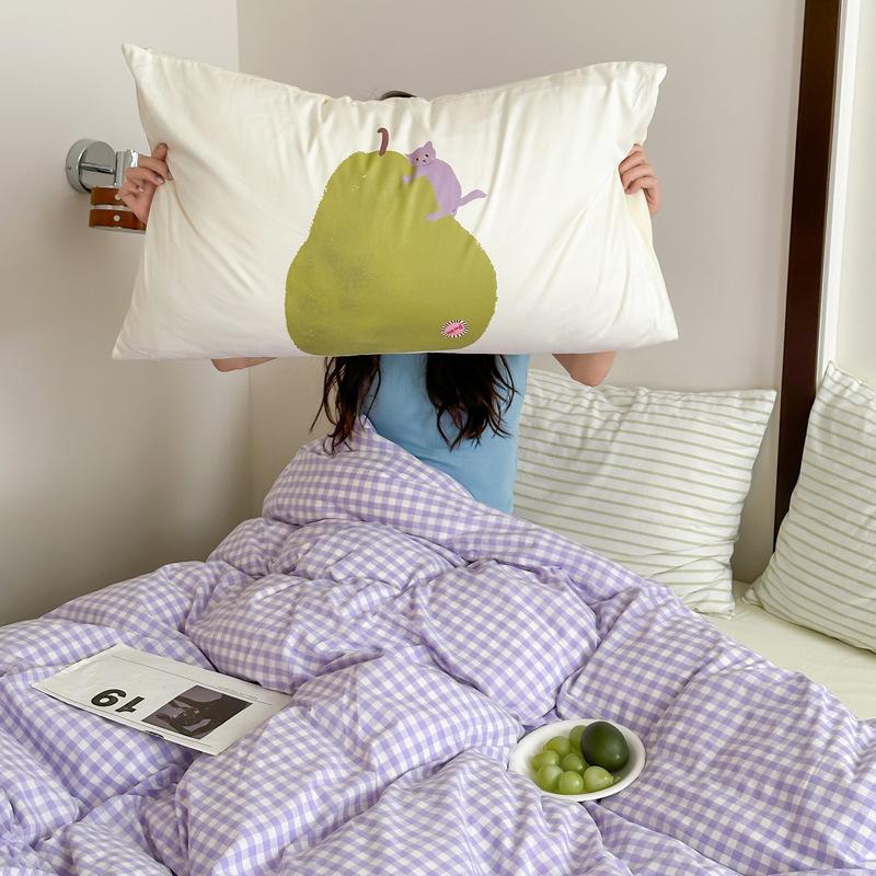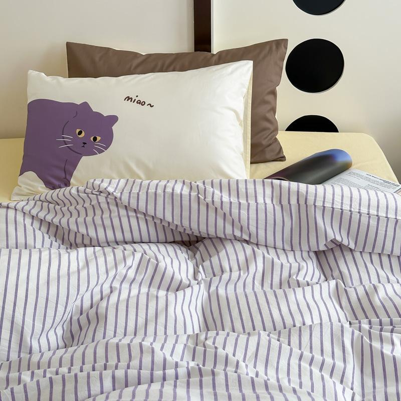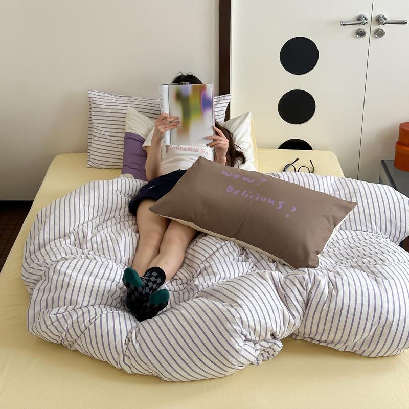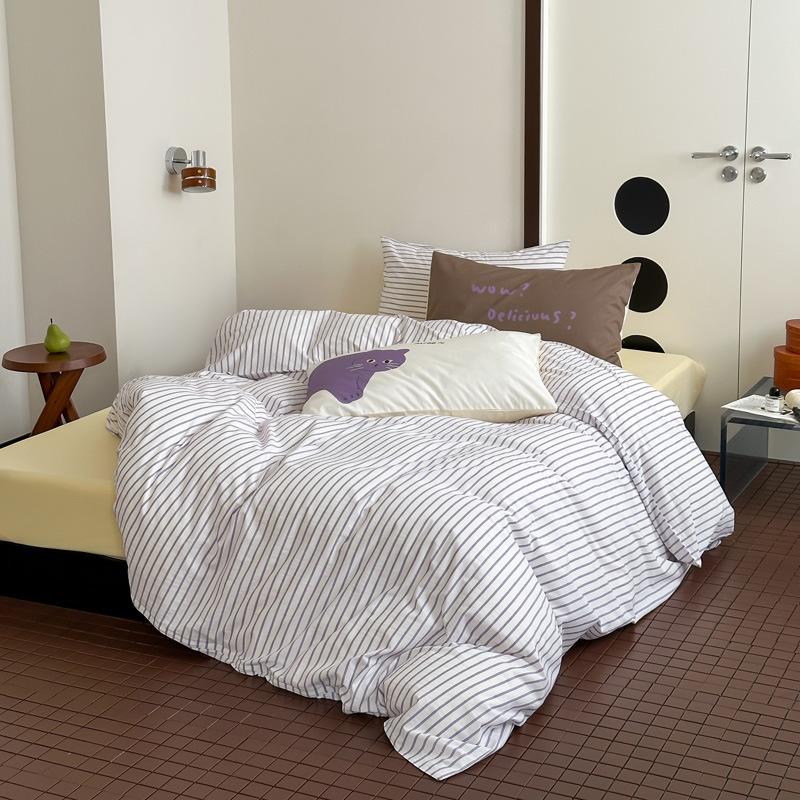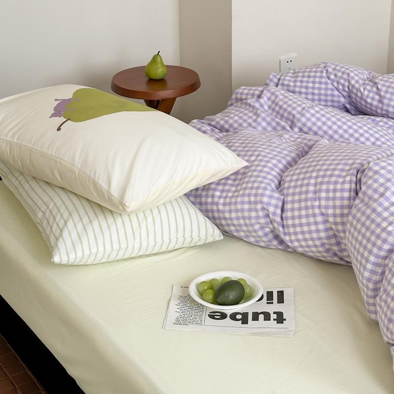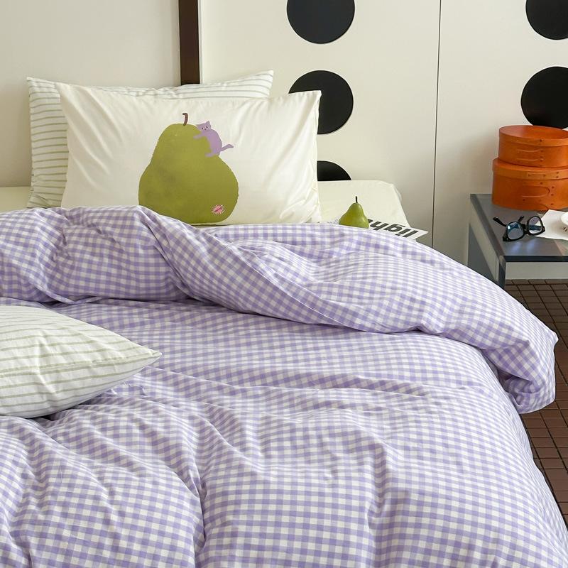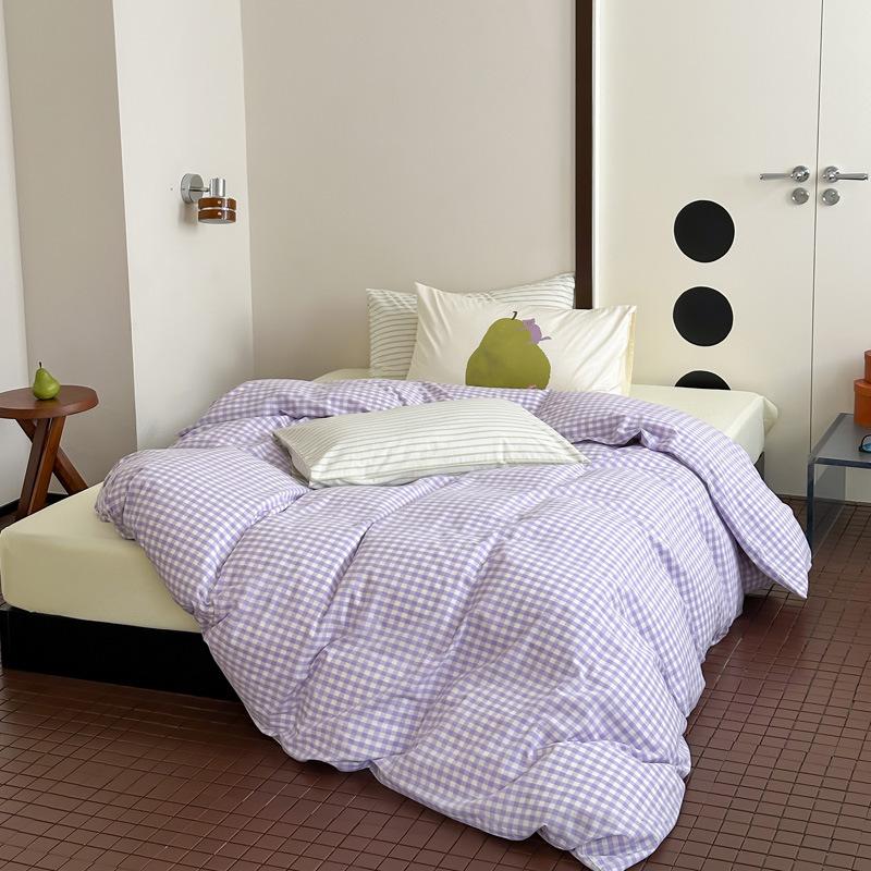Conjunto de Quatro Peças Ins Style Algodão Xadrez Listra Mix and Match Capa de Colcha Lençol Algodão Puro Fresco Roupa de Cama de Algodão Lavado