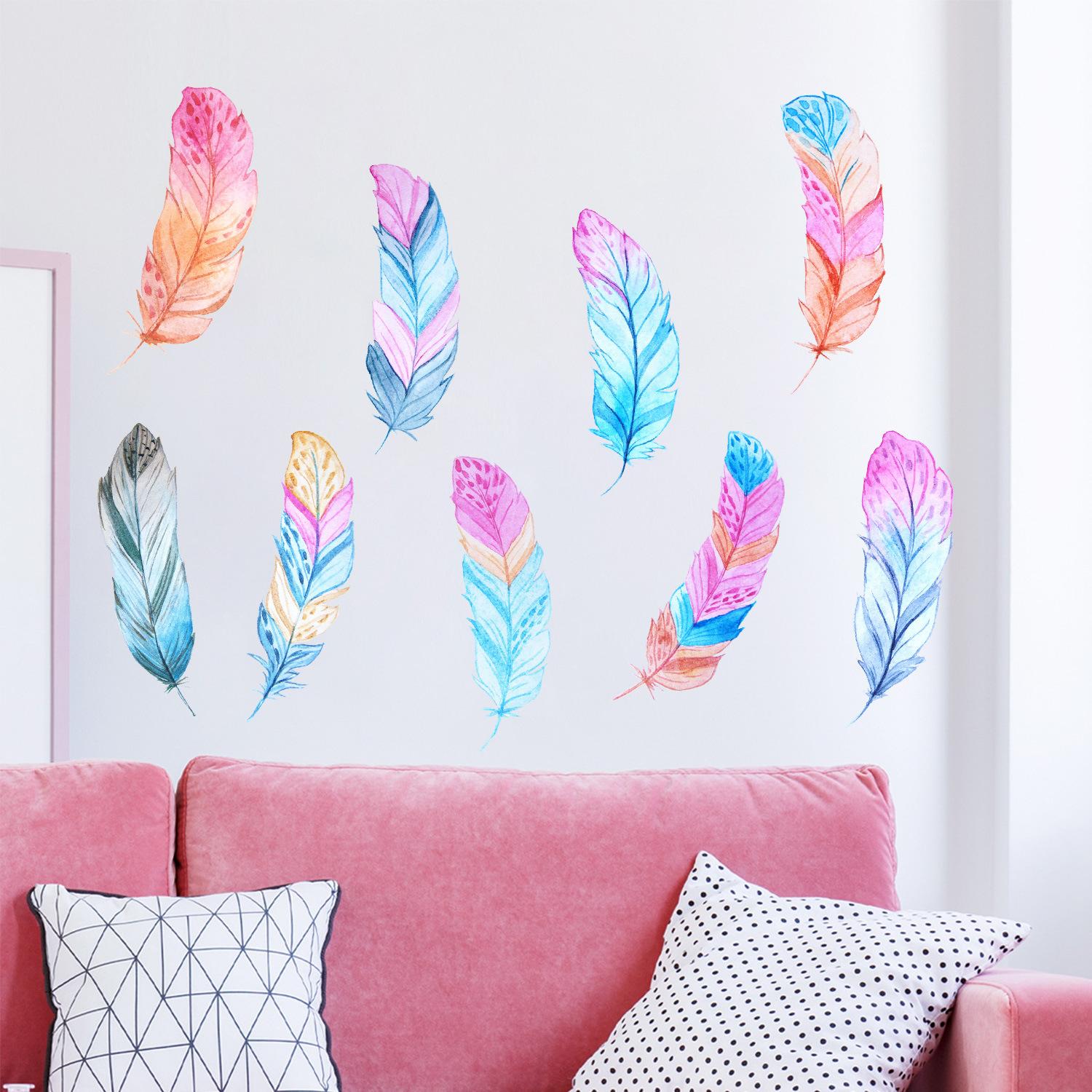 Adesivos de parede de penas coloridas comércio exterior Amazon quarto quarto sala de estar adesivos decorações de parede adesivos atacado