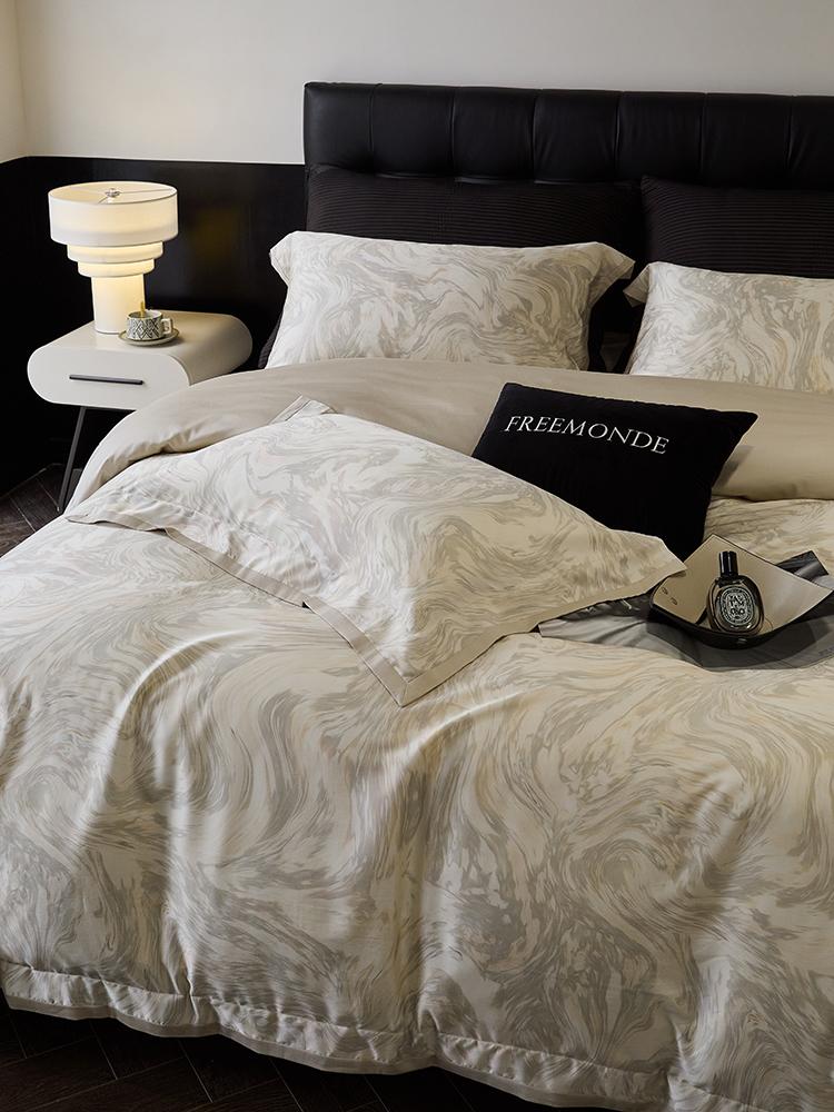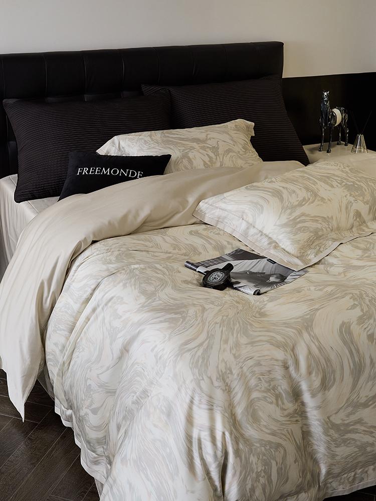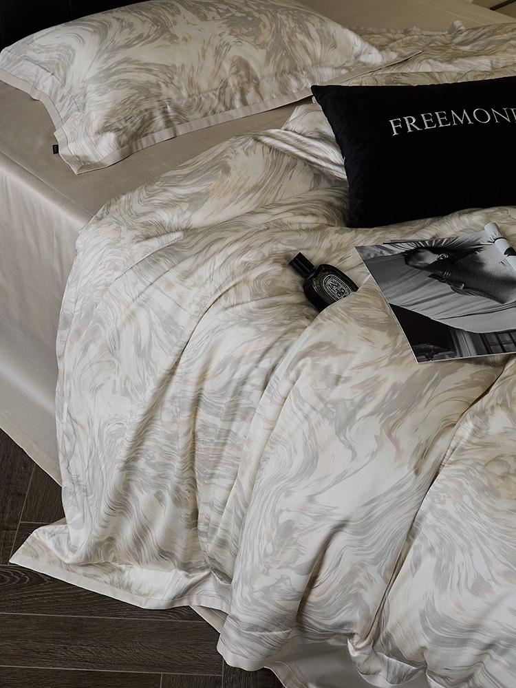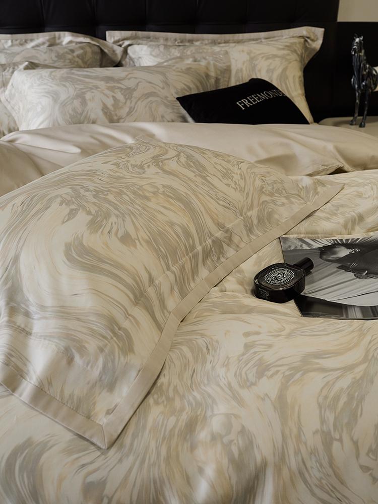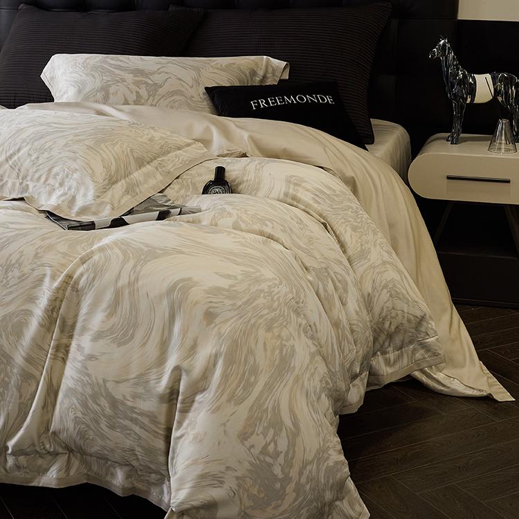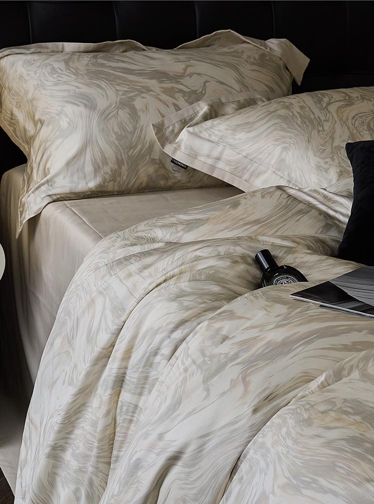O algodão de fibra longa é um material natural com propriedades ambientais e de saúde. É confortável e macio, de alta qualidade. Possui características de fibras longas e macias, respirabilidade, mercerização e alta resistência. Quanto maior a contagem do tecido, mais fino será o fio, mais delicado e liso será o tecido e melhor será o brilho.