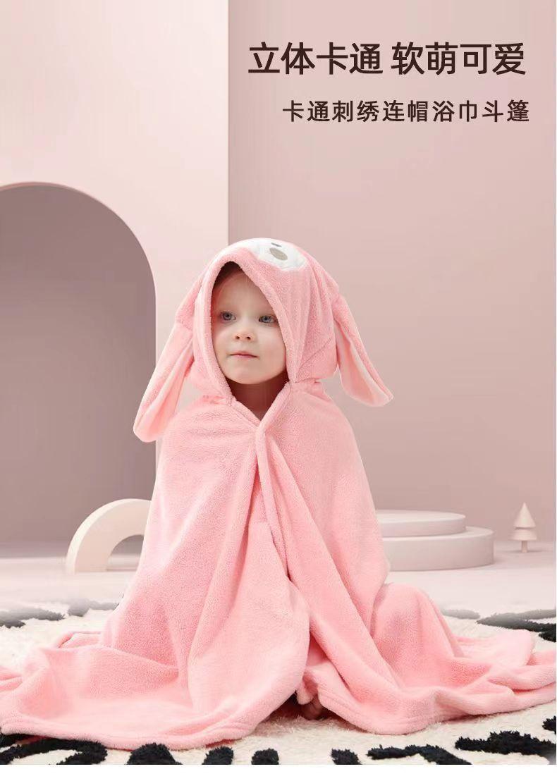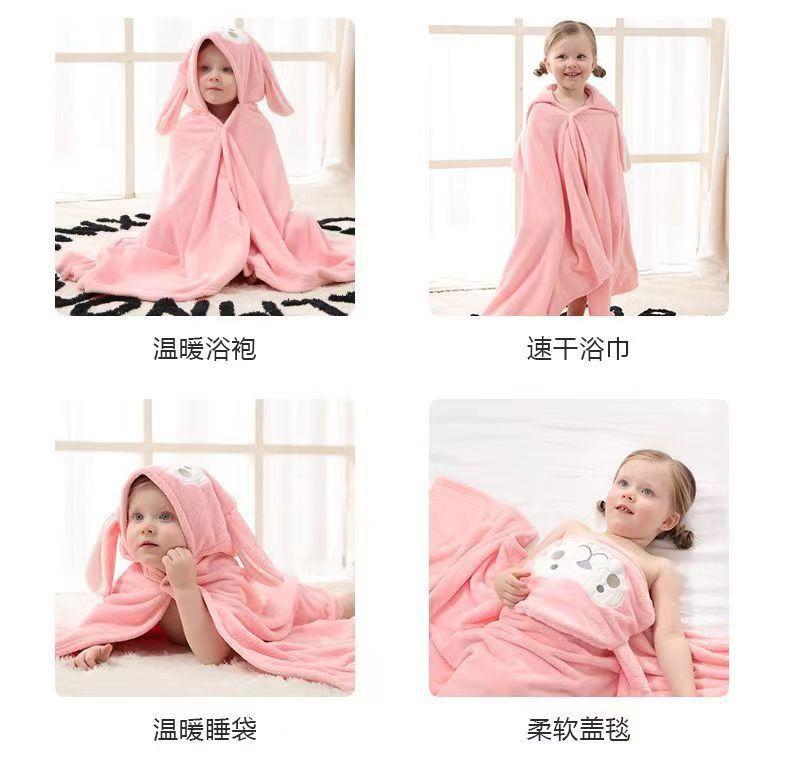 Coral Velvet Children's Hooded Cloak Toalha de Banho Poncho do Bebê Desenho Animado Espessado Macio Absorvente Roupão de Banho