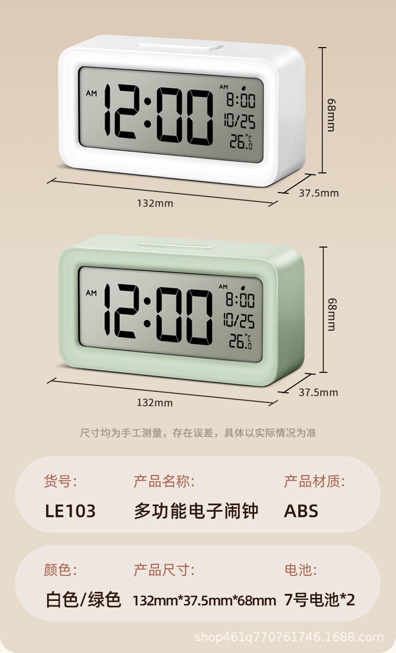 Green [large size 13.2cm-upgraded backlight] one-click snooze + temperature + date